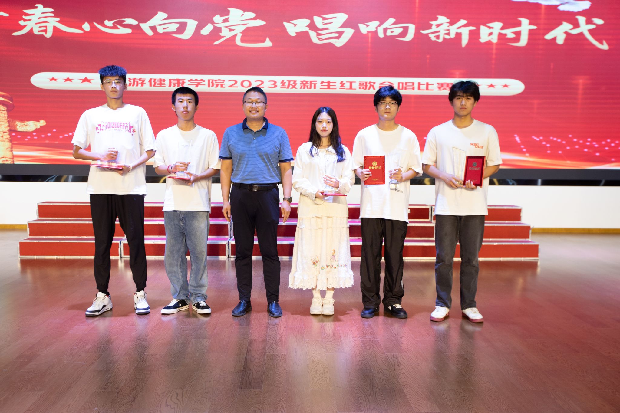 一曲曲红色赞歌深情追忆我党光辉历程,歌声时而轻柔婉转,时而跌宕激昂,整个比赛现场精彩纷呈、高潮迭起,各参赛班级的精彩演唱,不仅展现了我院学子昂扬的精神风貌,更彰显了新时期青年学生青春心向党,建功新时代的决心和信心,赢得了在场观众的阵阵掌声。最终,通过激烈的角逐,23烹饪工艺与营养3班、23烹饪工艺与营养8班级获得合唱比赛一等奖。23旅游管理3班、23旅游管理1班、23烹饪工艺与营养6班、23健身指导与管理2班、23酒店管理与数字化营运1班获得二等奖,其余各班获得三等奖。