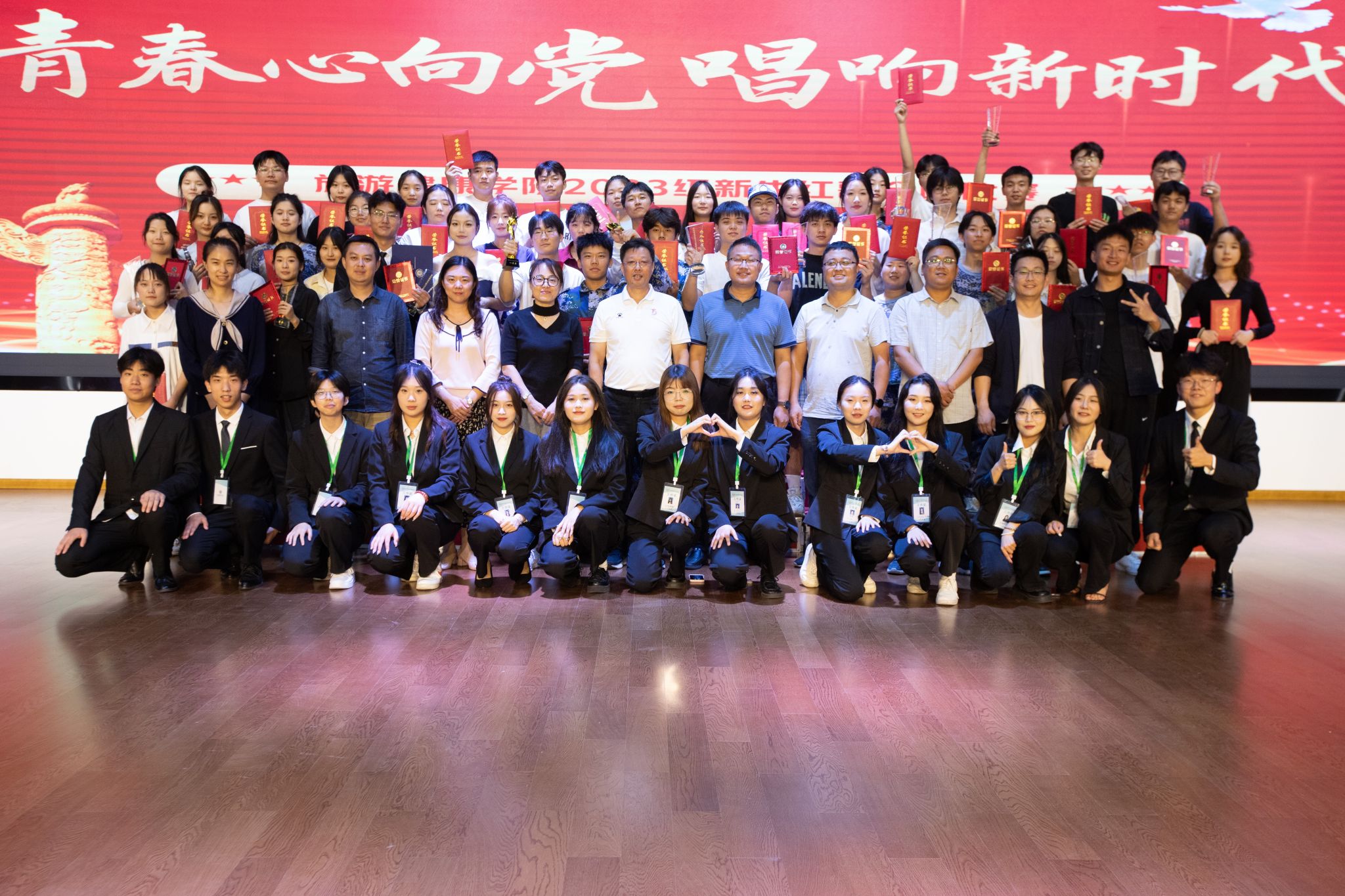 为隆重庆祝中华人民共和国成立74周年,引导青年大学生不断坚定理想信念,树立崇高信仰,让新时代大学生唱响爱党爱国主旋律,歌颂党的丰功伟绩,激发学生的爱党爱国热情。9月28日中午,旅游健康学院举行“青春心向党、唱响新时代”2023级新生红歌比赛,旅游健康学院党政领导班子及全体新生专职辅导员出席本次活动并担任比赛评委。