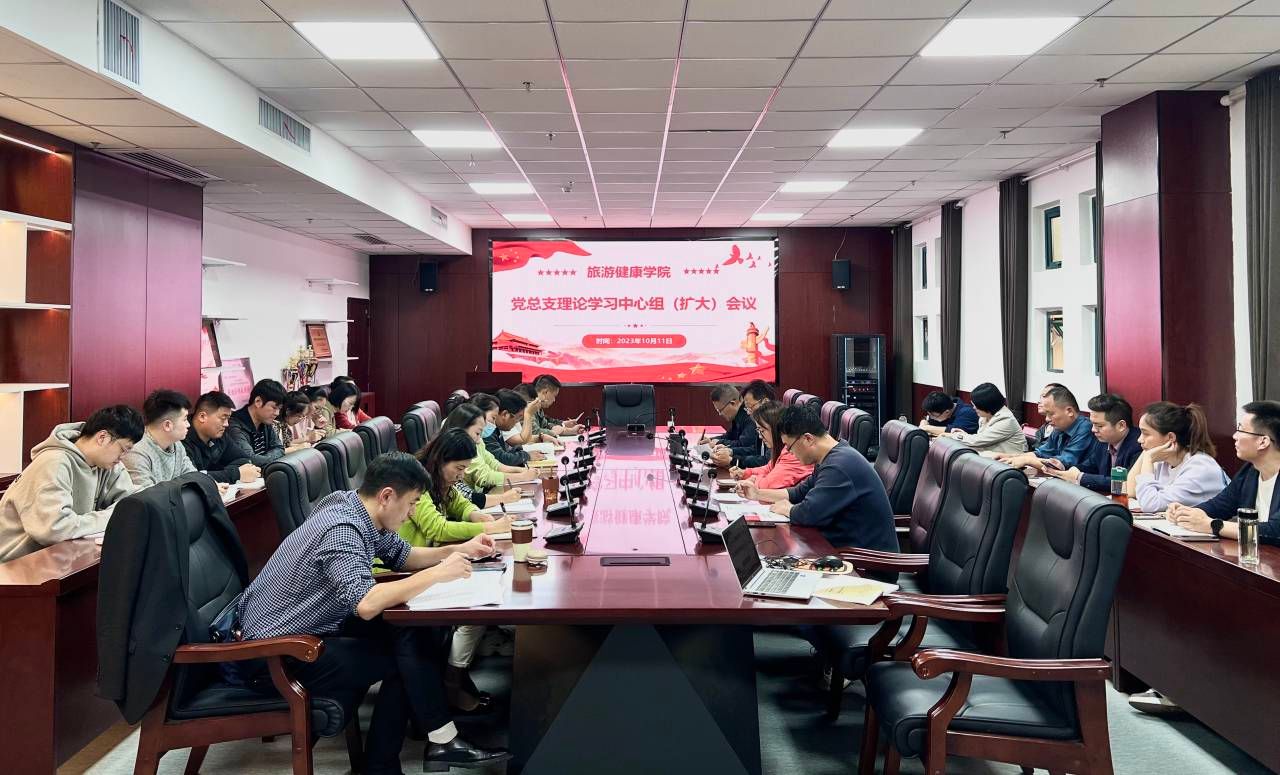 10月11日下午,旅游健康学院党总支在学院三楼会议室开展二级中心组(扩大)学习暨教职工政治理论学习。会议由学院党总支书记杨锐主持,全体教职工参加学习。