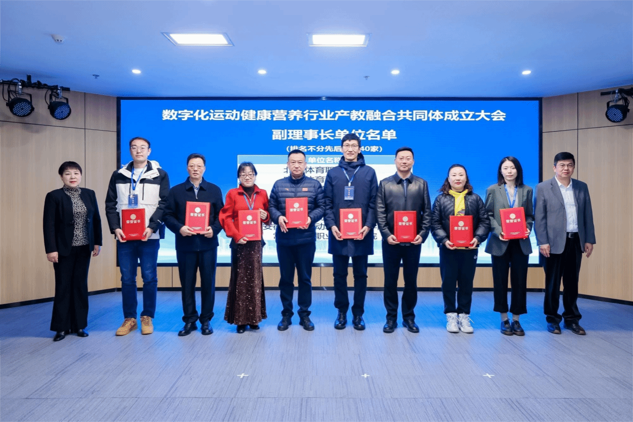 2月27日,在教育部、高校毕业生就业协会、亚洲运动健康营养学会等单位的指导下,由北京康比特体育科技股份有限公司、北京体育大学、广州城市职业学院等单位共同发起的全国数字化运动健康营养行业产教融合共同体成立大会在广东广州顺利召开。共同体致力于整合运动健康营养行业上下游企业、行业协会、高水平高校、职业院校和科研机构等优势资源,共有243家成员单位参加,其中企业109家、院校129家、行业协会5家。我校成功加入数字化运动营养健康行业产教融合共同体并被推选为副理事长单位。