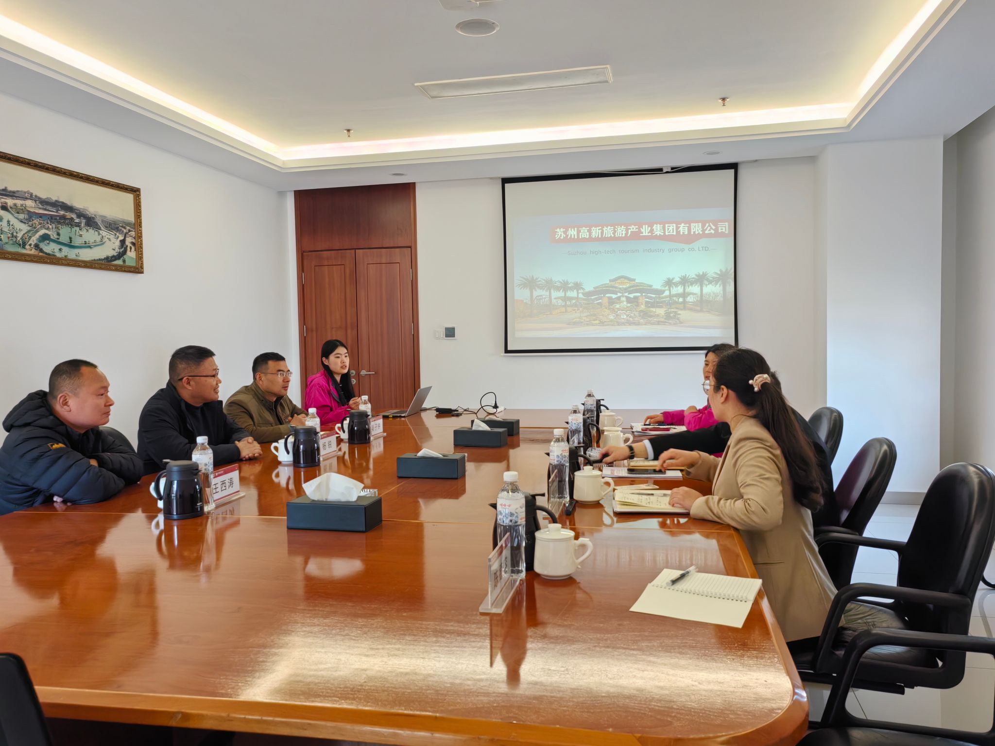 在苏州高新旅游集团,人力资源部总监、苏州乐园运营总监带领杨锐一行参观了员工宿舍、员工餐厅等区域,考察了员工工作岗位和环境。随后,与该集团总经理等企业高管进行座谈交流。他们表示,作为苏州知名旅游国企,集团近年旅游业务发展迅猛,对旅游人才的需求量庞大,希望能与我校在旅游管理、酒店管理与数字化运营、烹饪工艺与营养等专业进行广泛、深入的合作。