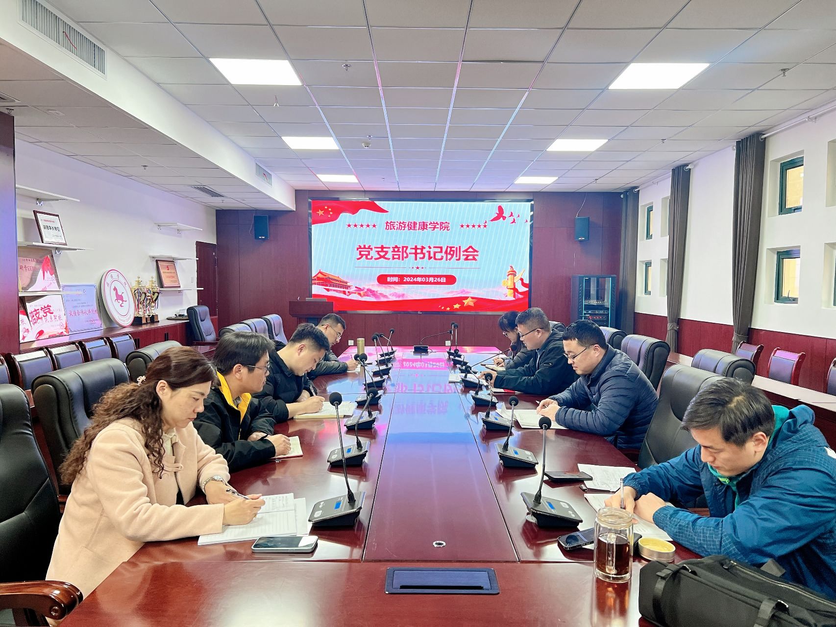 3月26日中午,旅游健康学院党总支在三楼会议室召开新学期党支部书记工作例会。各党支部书记、专职组织员张程程、副书记刘燕参加会议,会议由学院党总支书记杨锐主持。