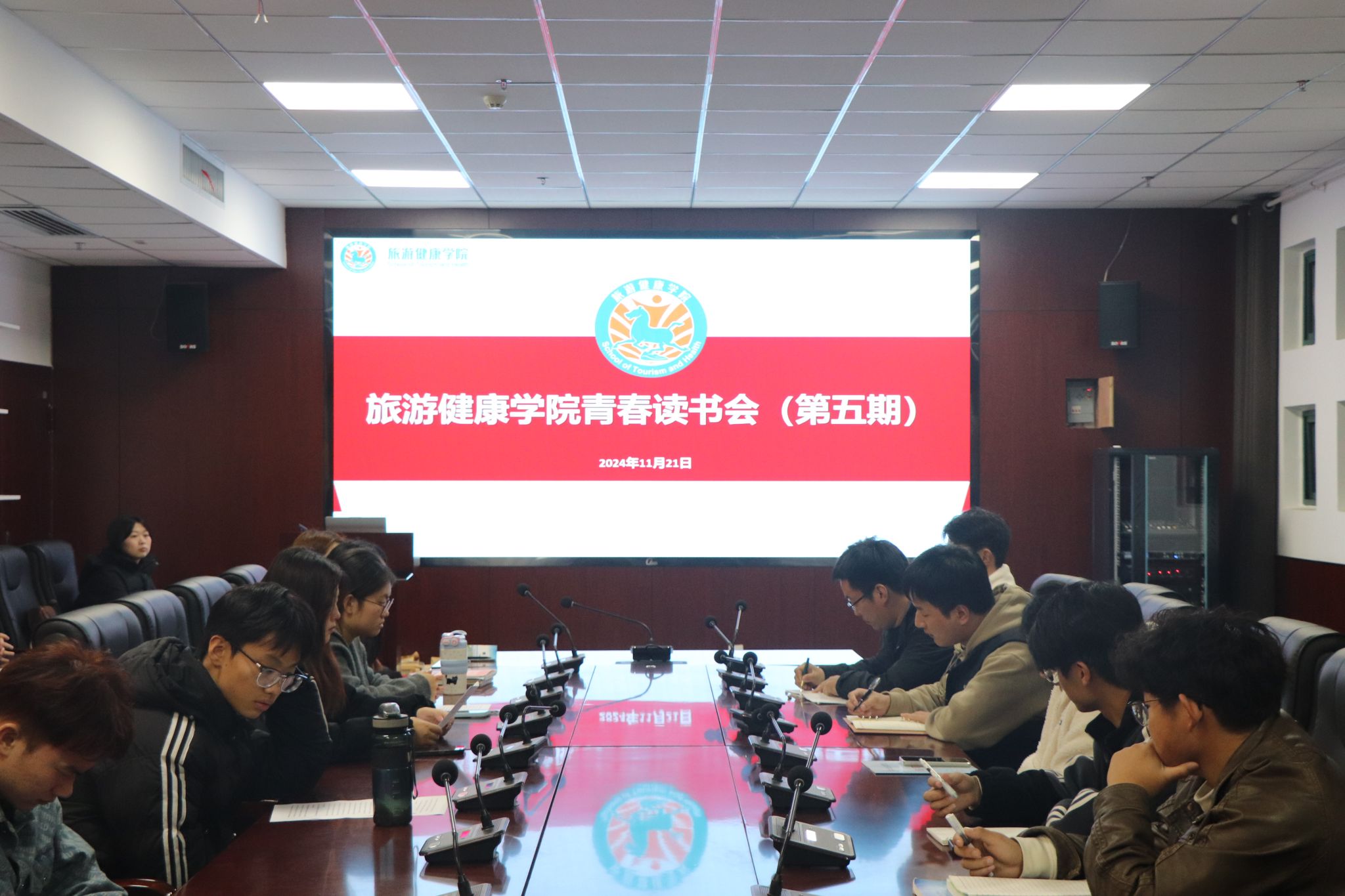为认真落实并开展好学校2024年全民终身学习活动周相关工作,积极营造爱读书、好读书、读好书和全民学习、终身学习的良好氛围,引导青年大学生在书籍中汲取营养,积极践行社会主义核心价值观,11月21日下午,旅游健康学院在学院会议室举行了第五期青春读书会,旅游健康学院团总支书记殷宏伟、团总支副书记方针以及2024级各班级班长参加了此次活动。