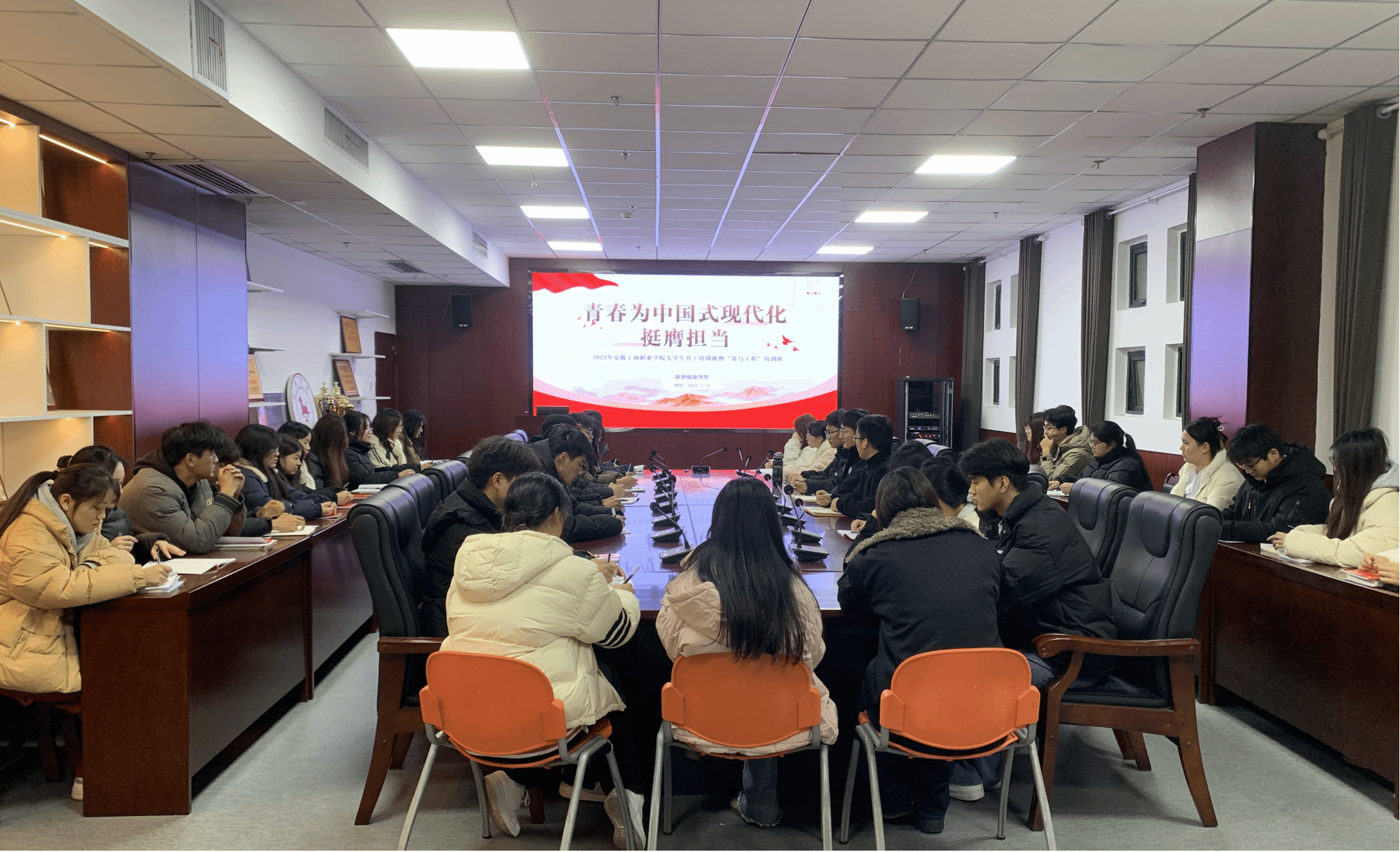 为深入学习贯彻习近平总书记关于青年工作的重要思想,扎实推进青年马克思主义者培养工程,提升“青马工程”培训班学员的思想政治素养,12月19日,旅游健康学院在学院会议室隆重举办了以“青春为中国式现代化挺膺担当”为主题的讨论活动。此次活动吸引了来自学院不同班级的37位优秀学员积极参与,共同探讨了新时代青年的责任与担当。