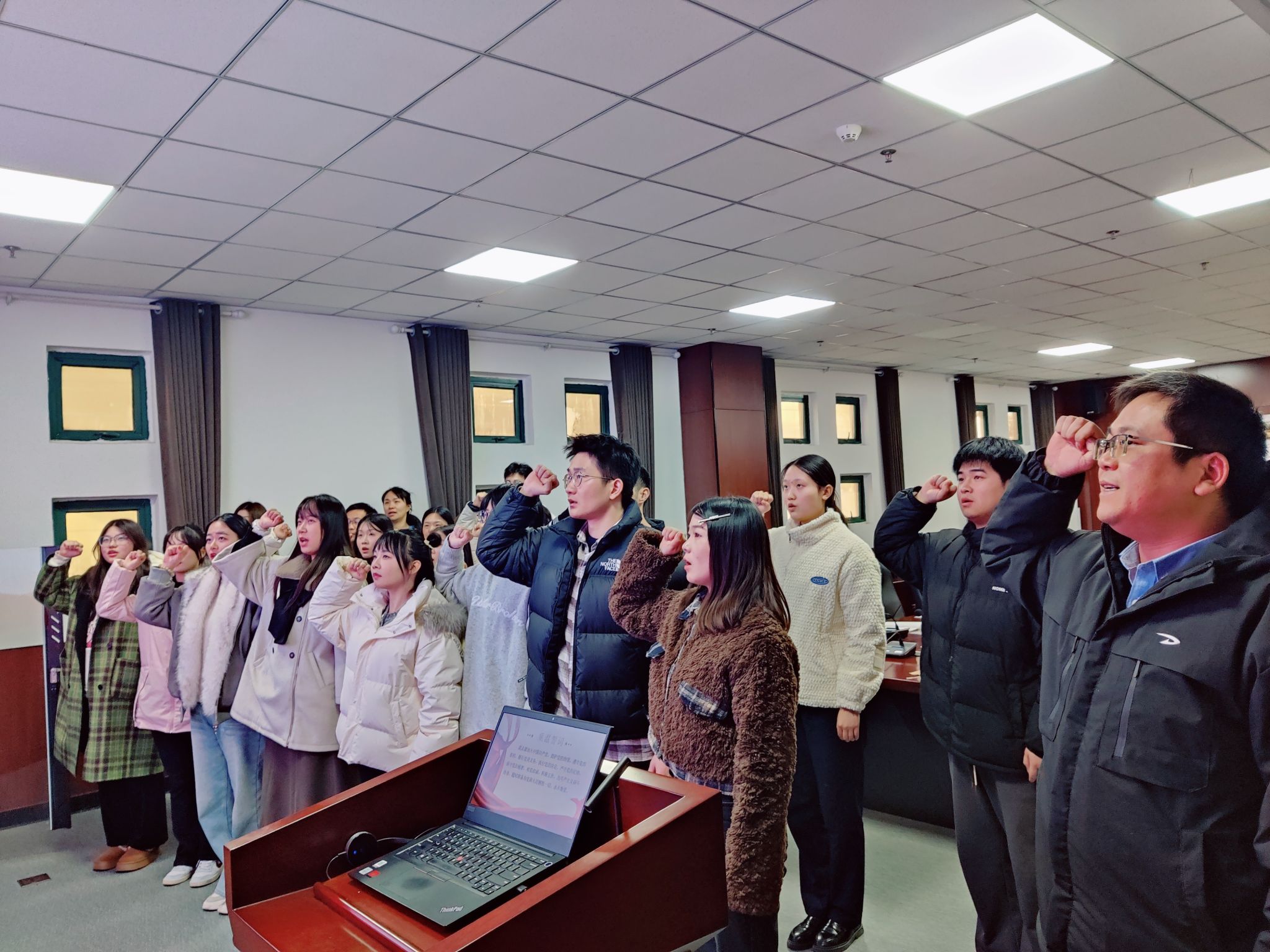 会后,在支部书记张亚运的带领下,此次发展的预备党员和支部其他党员一起面向党旗郑重宣誓,旨在帮助支部全体党员牢记自己的承诺,勿忘并践行自己的责任和义务;更要坚定党性、坚定理想、信念、追求。(撰稿:张亚运 审核:杨锐)