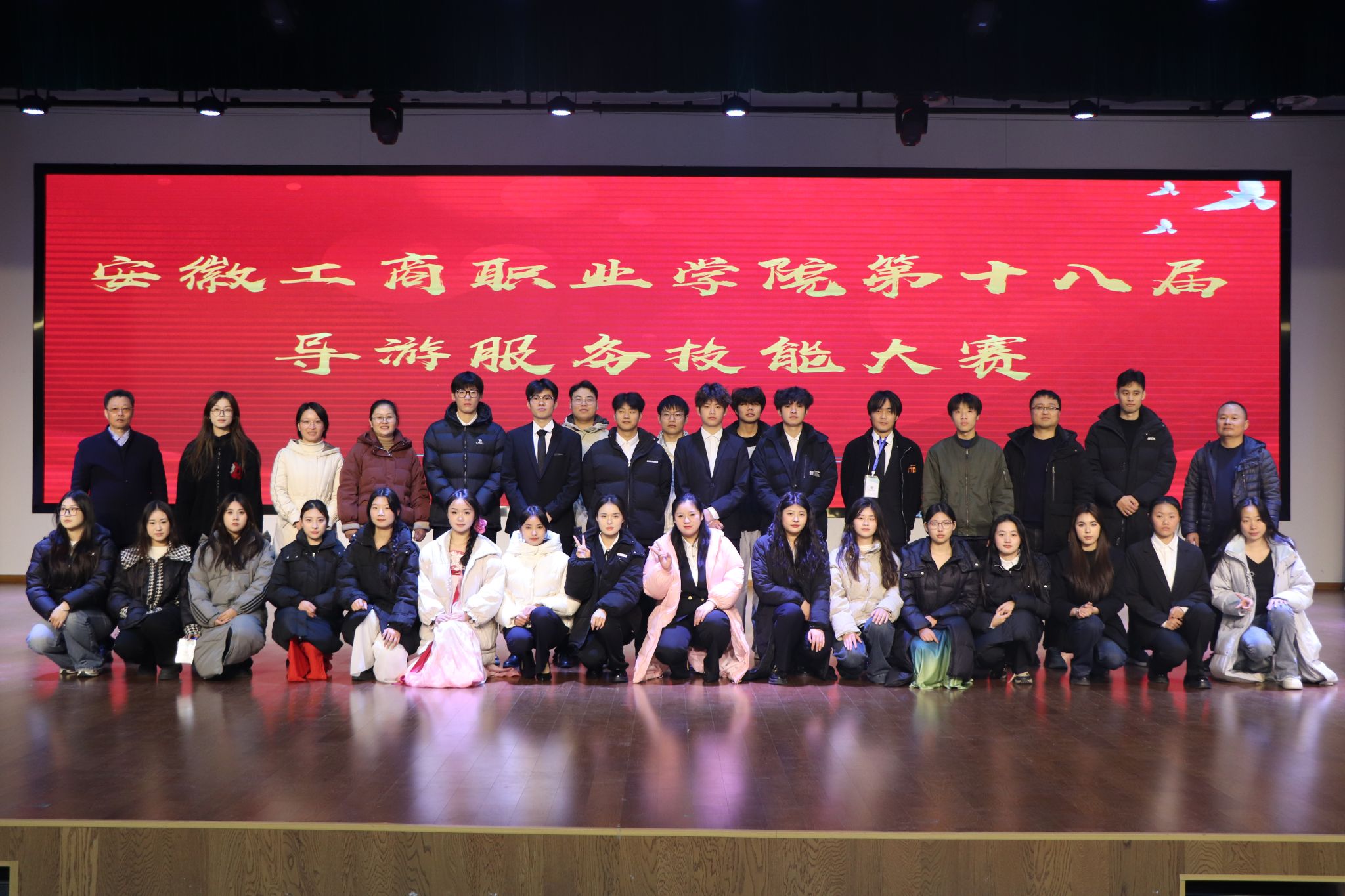 12月11日晚,大学生活动中心灯火辉煌,安徽工商职业学院第十八届普通话导游大赛决赛在这里隆重举行。旅游健康学院院长傅绪明、党总支书记杨锐应邀参加,副院长王彦龙以及部分专业教师担任评委。