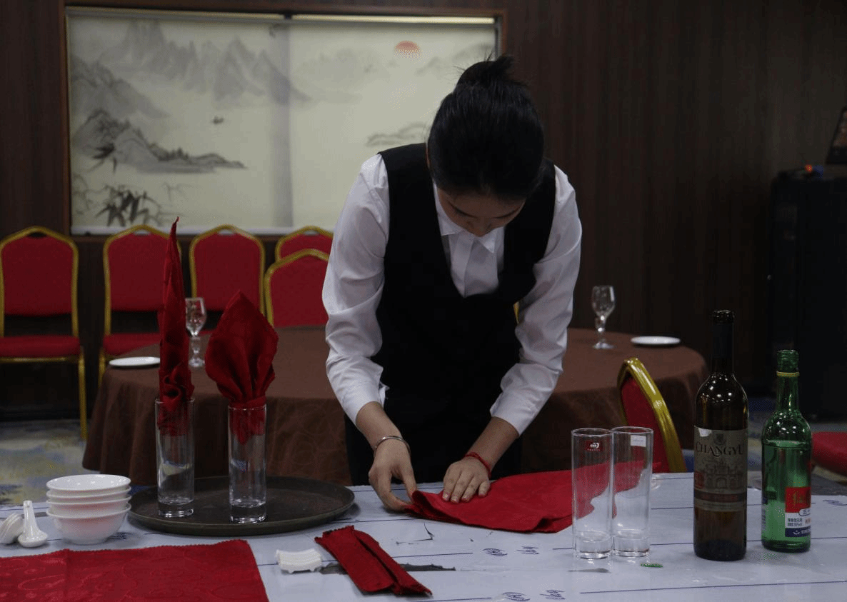 为了提高我院酒店管理与数字化运营专业技术技能人才培养水平,以赛促教,充分发挥技能竞赛对教育教学的引领和评价水平,推动酒店管理专业建设和教学改革深入发展,建立健全以竞争为导向的激励学习方式,酒店管理与数字化运营专业于12月25日在餐厅实训室成功举办安徽工商职业学院2024年度酒店服务校赛决赛。