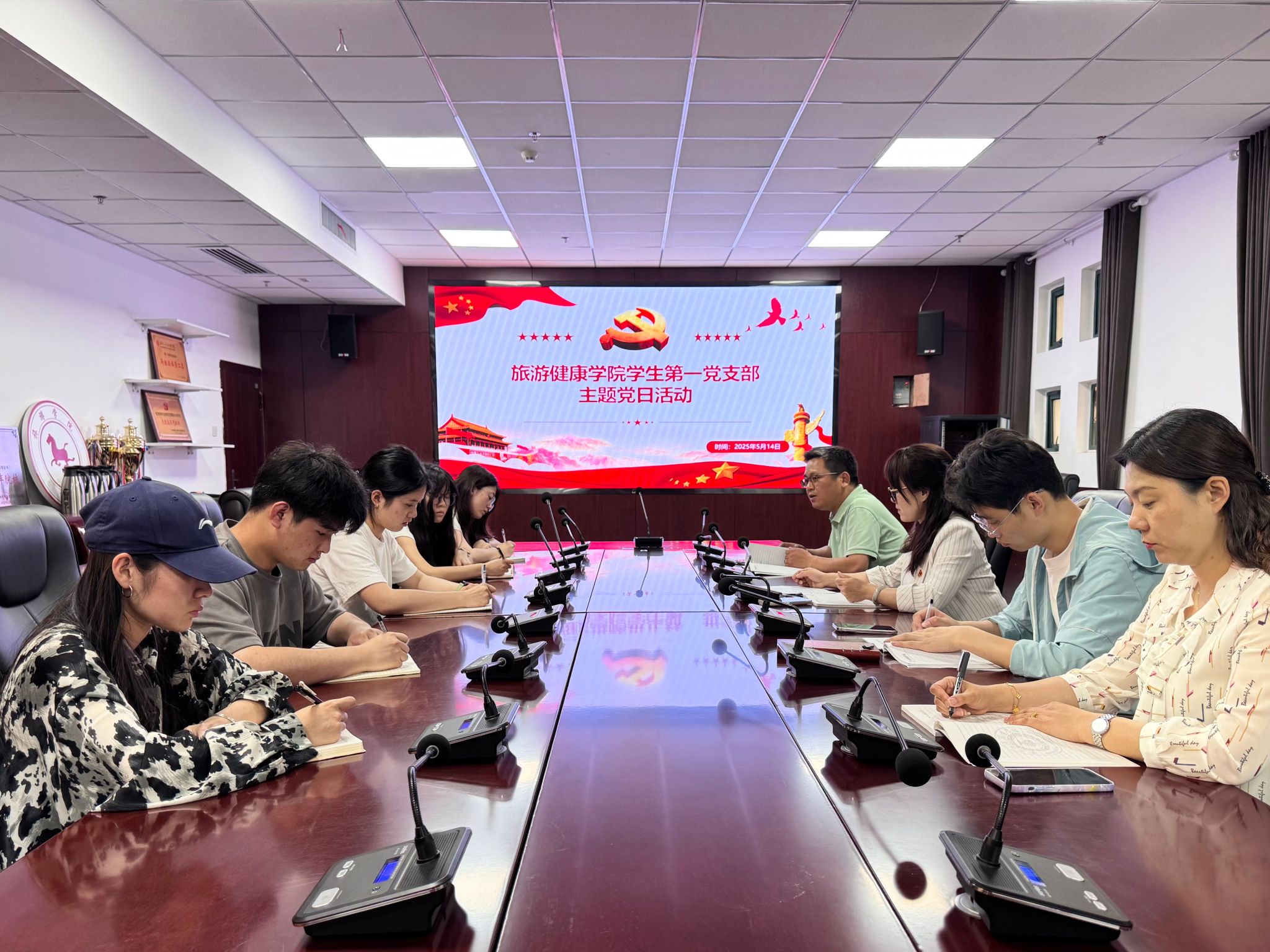 为加强党支部的组织建设和作风建设,旅游健康学院学生第一党支部于 5月14日在学院会议室开展了主题党日活动。支部全体师生党员参会,会议由支部书记张亚运主持。