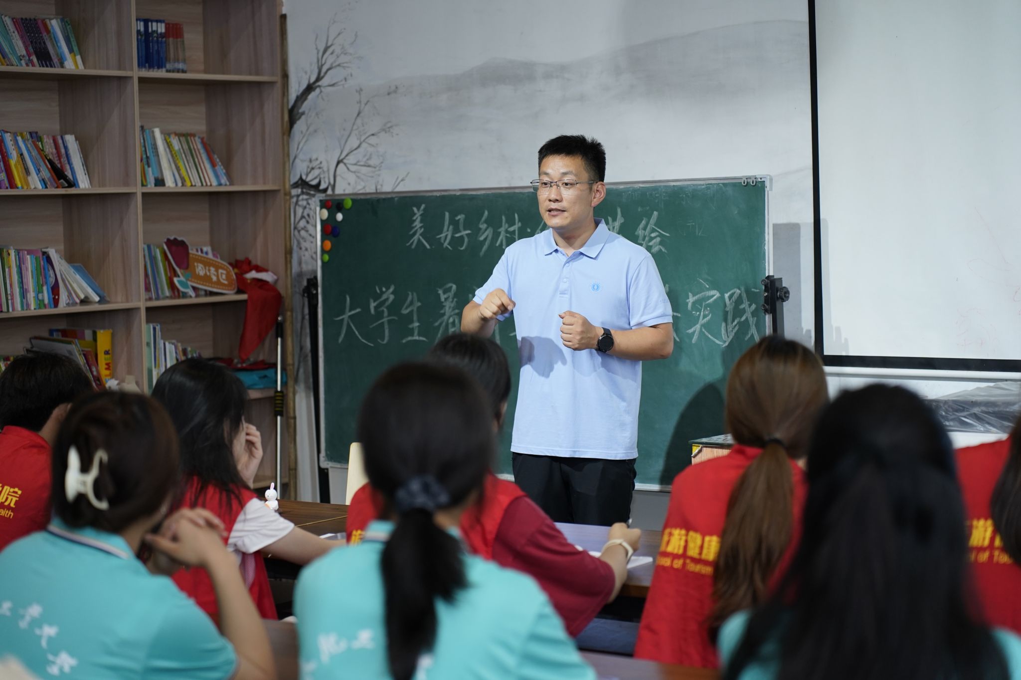 活动由安徽工商职业学院旅游健康学院指导老师殷宏伟主持。他对三校学子克服高温酷暑、深入基层一线的实践精神给予高度评价。他详细阐述了旅游健康学院“文旅融合赋能乡村振兴”的实践方向,强调青年学子需以专业所学服务乡村发展,在田间地头读懂“中国之治”,在实践课堂中锤炼过硬本领。合肥工业大学社会实践团队指导老师鞠秋洋首先介绍了该校社会实践的任务与工作安排,重点分享了团队在徽州非物质文化遗产调研中的创新实践。她指出,同学们应以此次实践为契机,以“观察者”的敏锐、“思考者”的深度、“践行者”的担当,将田野调查转化为学术成果,为文化传承注入青年智慧。