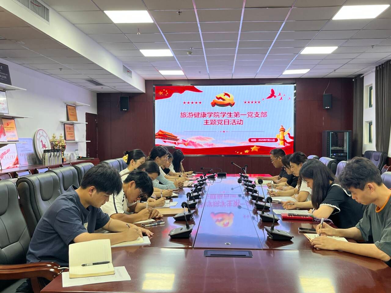 为深入学习贯彻习近平新时代中国特色社会主义思想的内涵与实践要求,凝聚青年学子团结奋斗的磅礴力量,旅游健康学院学生第一党支部于7月11日开展主题党日活动。支部全体党员参会,会议由支部书记张亚运主持。