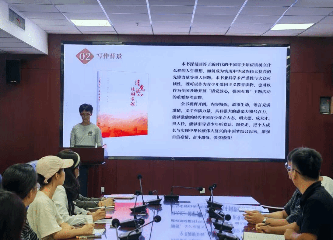随后,24级旅游管理2班的陈浩文同学选读了《请党放心,强国有我》一书。通过深情诵读书中的精彩篇章,结合新时代青年为实现中华民族伟大复兴而团结奋斗的感人事迹,向同学们号召:“我们要不忘初心,以书中的先进人物为榜样,用自己的实际行动践行‘请党放心,强国有我’的青春誓言。”