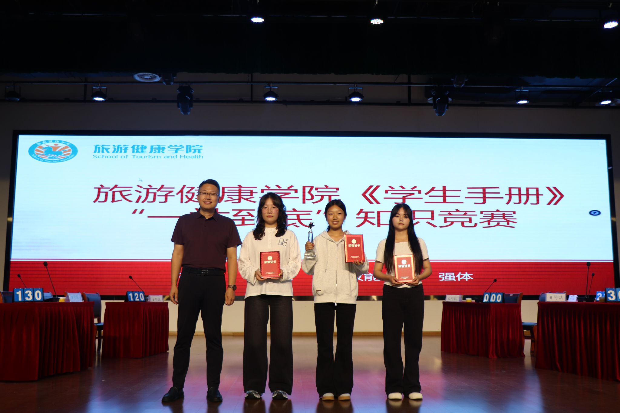最终,根据同学们的答题情况以及现场赛的综合表现,王紫乐、温佳瑶等75名同学获《学生手册》“优秀学习标兵”荣誉称号,25烹饪工艺与营养3班获团体现场赛一等奖,25烹饪工艺与营养5班和25旅游管理4班获二等奖,25旅游管理2班、25健康管理3班、25健身指导与管理1班、25旅游管理1班、25烹饪工艺与营养4班获三等奖。此次知识竞赛帮助同学们进一步了解和掌握学校的各项纪律准则和规章制度,切实增强了同学们的纪律意识与防范能力,同时也为深入实施“大学生文明修身工程”提供了有力支撑。活动不仅提升了学生的文明素养与道德自觉,更为学院加强思想政治教育工作、维护校园和谐稳定、营造积极向上的优良学风奠定了坚实基础。(撰稿:殷宏伟 一审:殷宏伟 二审:刘燕 三审:杨锐)