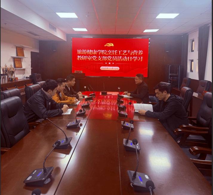 2025年11月12日下午,安徽工商职业学院烹饪工艺与营养教研室党支部在旅游健康学院三楼会议室召开十一月主题党日活动。本次会议由党支部书记左旦主持,支部全体党员参加。