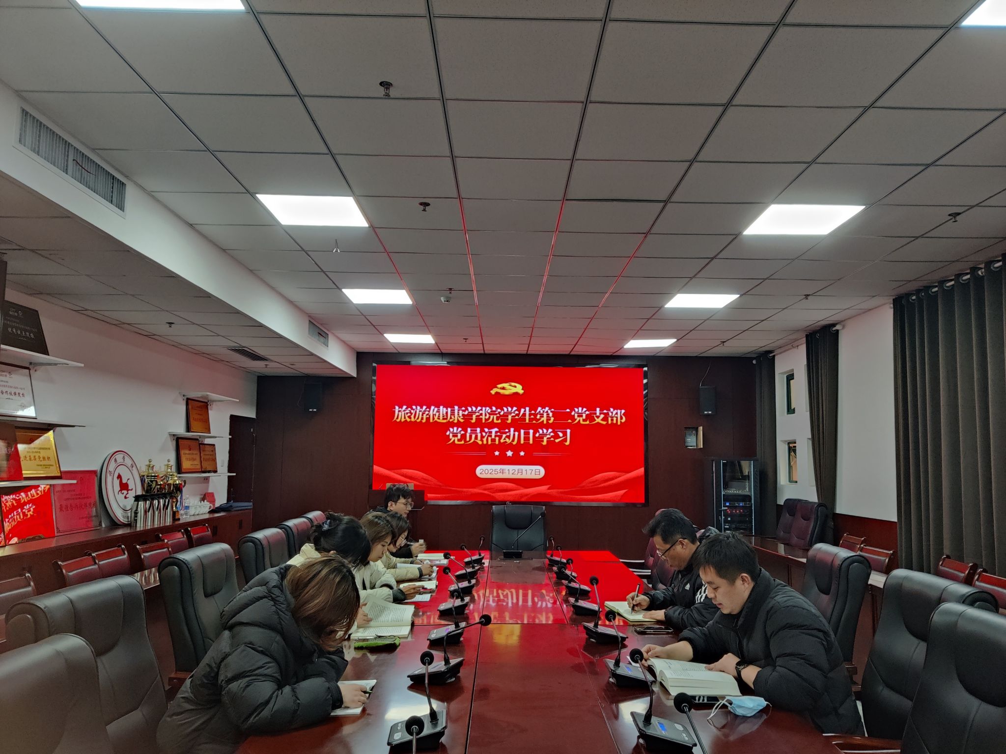 为持续深入学习贯彻习近平新时代中国特色社会主义思想,进一步提升支部党员的理论素养与党性修养,12月17日下午,旅游健康学院学生第二党支部在支部开展党员活动日专题学习活动。支部书记孙群主持学习。