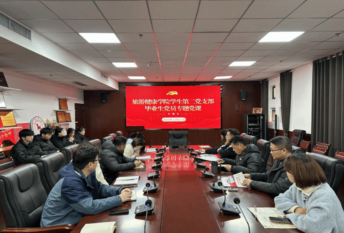 为强化毕业生党员党性修养,筑牢廉洁自律防线,12月27日中午,旅游健康学院学生第二党支部在学院会议室召开毕业生党员廉洁专题党课。本次党课由支部书记孙群主讲,全体毕业生党员参会。