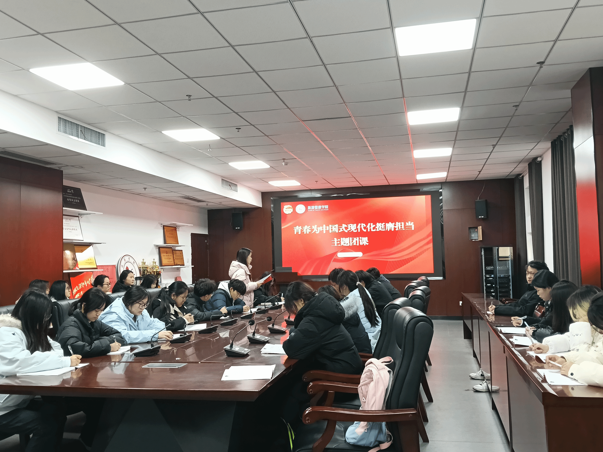 为深入学习贯彻党的二十届四中全会精神,团结引领广大青年在全面建设社会主义现代化国家的新征程中勇担使命、奋发有为,1月5日中午,在旅游健康学院团总支的组织下,学校青马培训班旅游健康学院的学员们开展了“青春为中国式现代化挺膺担当”主题团课活动。活动通过理论学习、案例分享、互动研讨等形式,引导青年学子深刻理解中国式现代化的内涵与意义,激励他们以青春之我投身社会主义现代化强国建设的伟大实践。