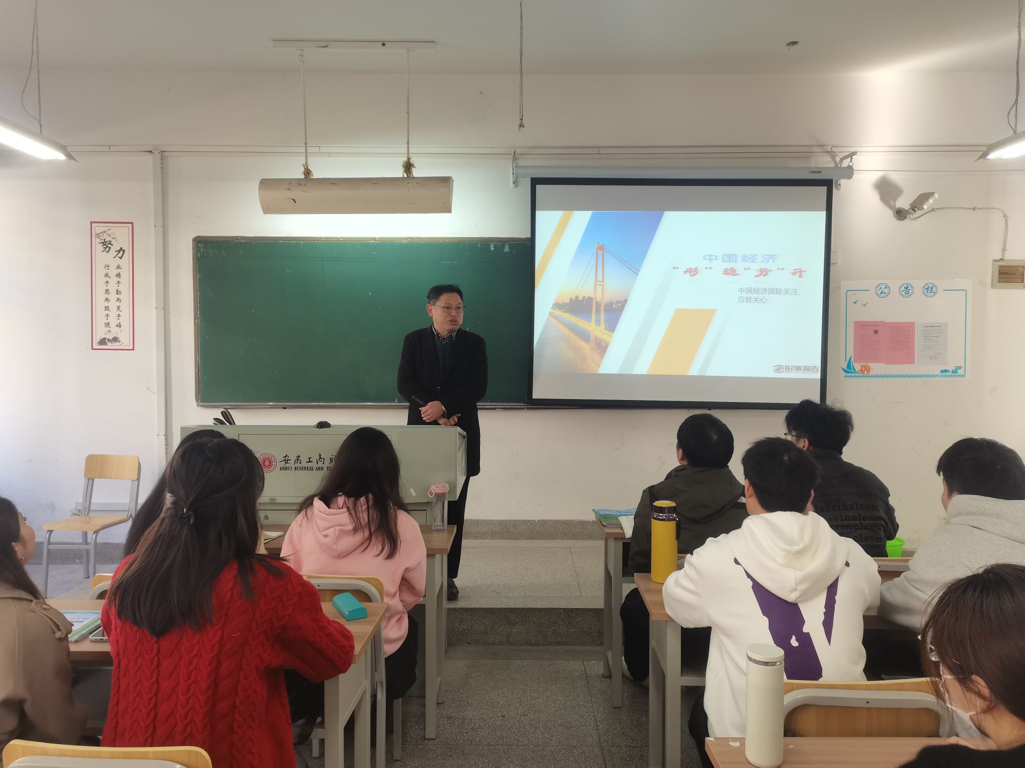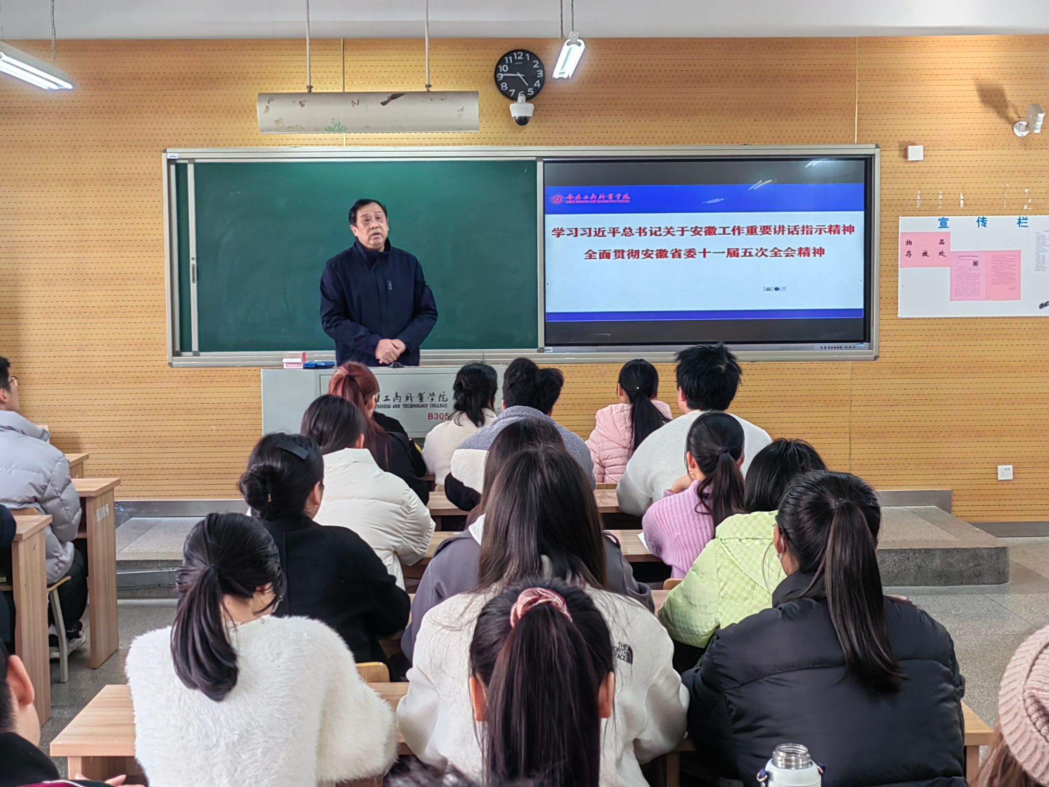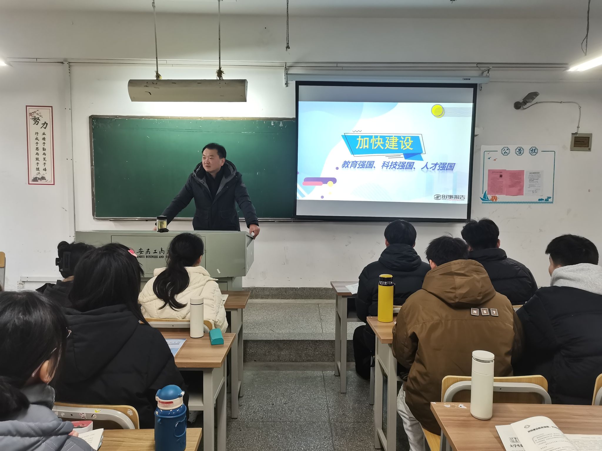 为全面贯彻党的教育方针,落实好学校党政领导班子带头推动思政课建设的要求,本学期以来,校党委班子成员齐建平、李雪、陈行、胡捍东、陈章奇、吴松飞、刘浩、孔成、朱小龙分别走进2023级各班级,为学生讲授形势与政策课。内容包含《开辟马克思主义中国化时代化新境界》《走好中国式现代化之路》《中国经济“形”稳“势”升》《加强建设教育强国、科技强国、人才强国》《赓续历史文脉 谱写当代华章》《以新安全格局保障新发展格局》等专题,用创新的理论、严谨的逻辑、生动的语言、鲜活的事例,带给青年学予以精神的滋养和启迪。