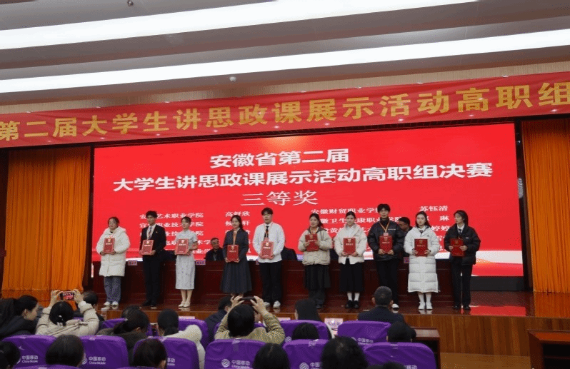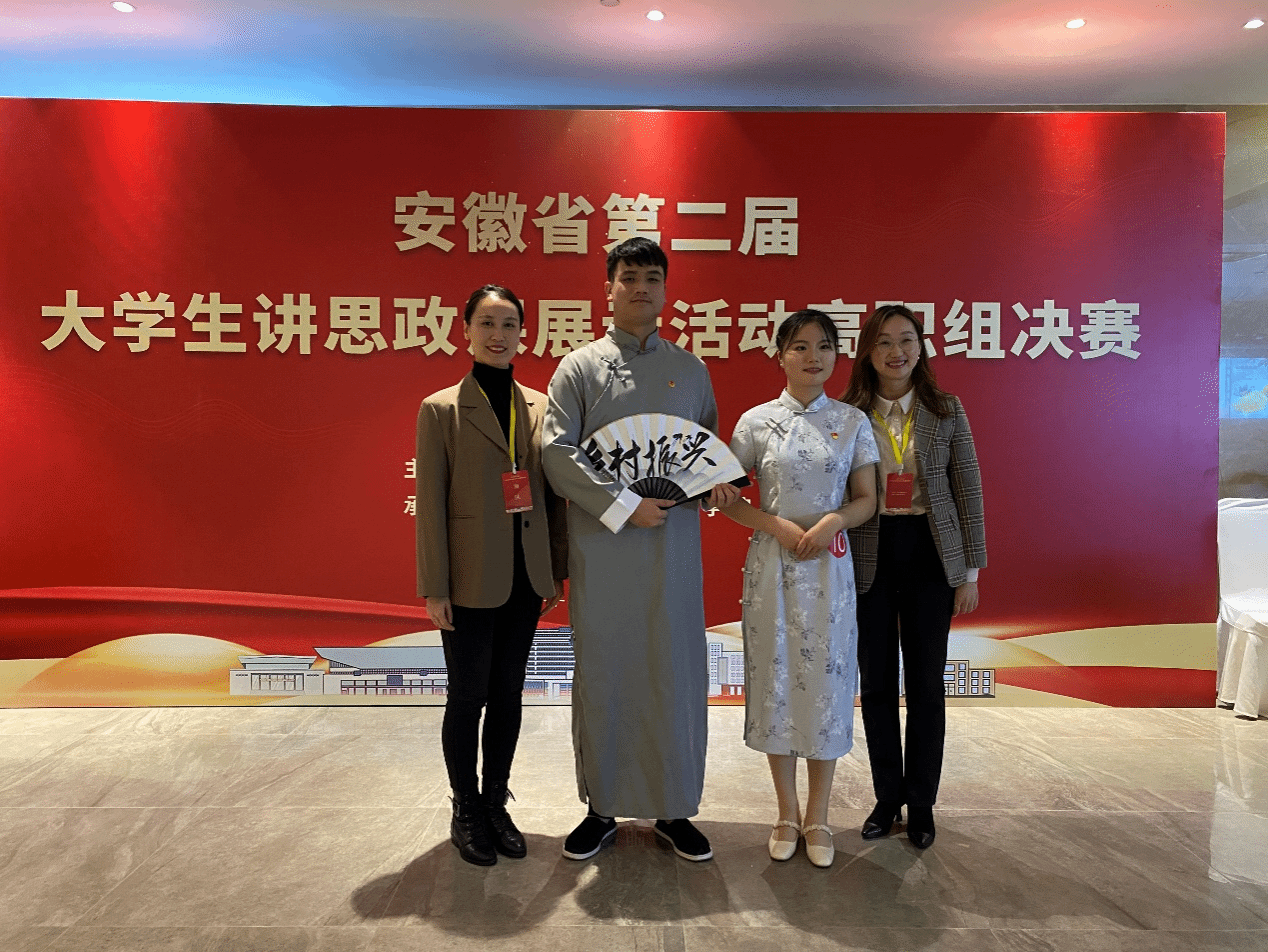 12月27日,由中共安徽省委教育工委主办,安徽职业技术学院承办的安徽省第二届大学生讲思政课展示活动高职组决赛在安徽职业技术学院举行。经过现场的激烈角逐,我校管理学院学生刘慎楠、艺术设计学院学生张雪情团队获得决赛三等奖。