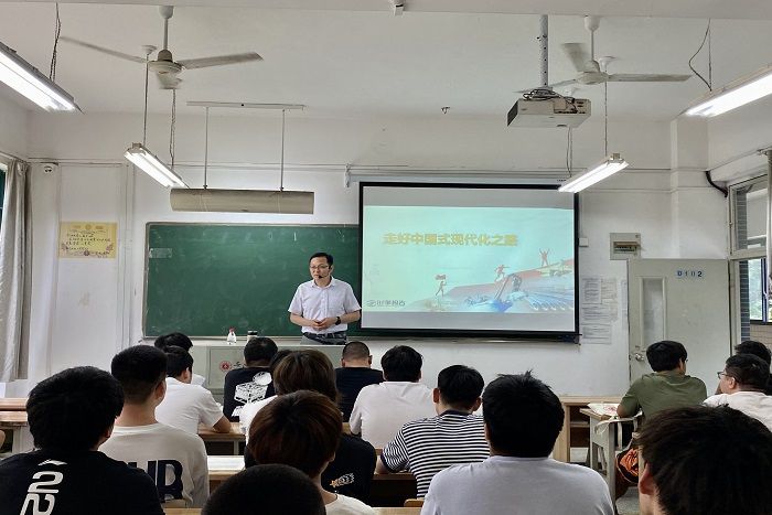 为进一步落实中共中央办公厅、国务院办公厅《关于深化新时代学校思想政治理论课改革创新的若干意见》文件精神,落实高校领导干部讲思政课的要求,近期校领导纷纷走上讲台,为学生讲授形势与政策课。根教育部2023年上半年“形势与政策”课专题安排,校领导及党委班子成员齐建平、李雪、陈行、胡捍东、陈章奇、吴松飞、刘浩、孔成、朱小龙分别走进2022级各班级,为学生们讲授《聚天下英才 筑强国之基》《走好中国式现代化之路》《开创高质量发展新局面》《立志复兴伟业 踔厉奋发前行》等“形势与政策”课。