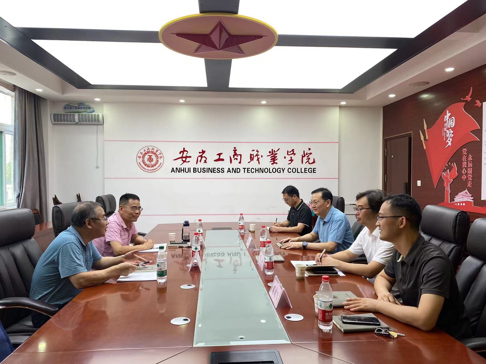 8月3日,安徽机电职业技术学院校党委委员、宣传统战部部长、马克思主义学院院长徐生,安徽商贸职业技术学院宣传统战部副处级组织员、关工委副主任兼办公室主任魏强来我校调研交流。党委委员、副院长陈章奇,党委委员、党委宣传统战部部长孔成,热情接待,马院主要负责人,党委宣传统战部副部长马大峰陪同接待。