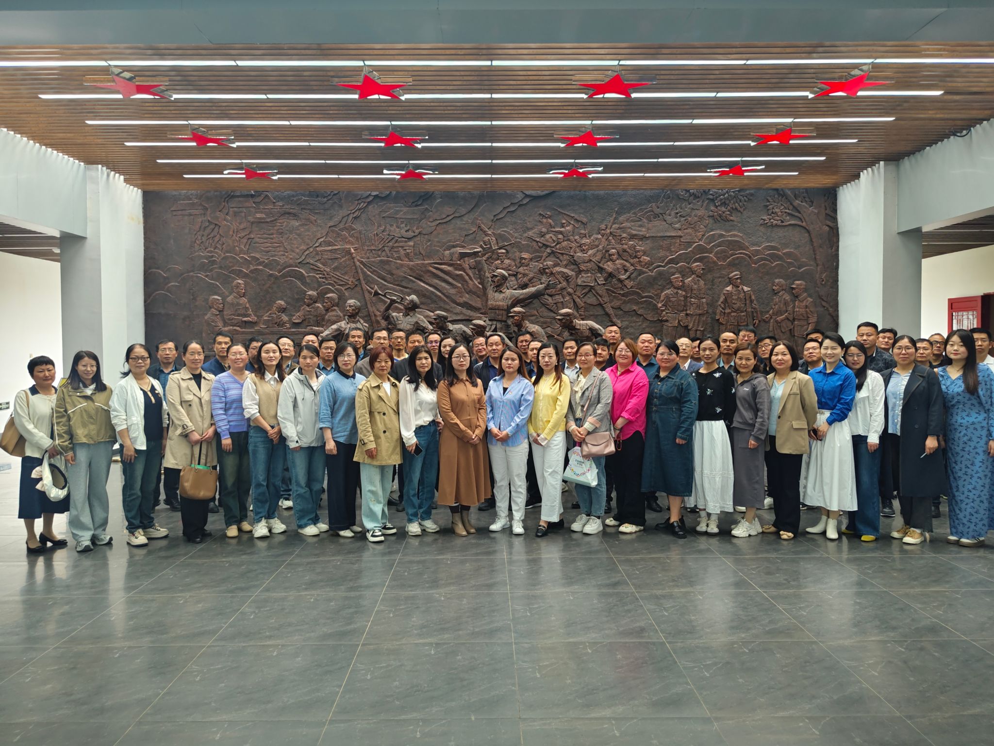 在爱国主义教育基地—长丰县杨庙镇刘云峰烈士纪念馆内,与会人员依次参观了“永恒的怀念”“辉煌的丰碑”“烽火的回忆”“血染的风采”四个展区。刘云峰烈士的《入党申请书》手稿等一件件珍贵的文物、一张张鲜活的历史照片和一页页珍贵资料,在纪念馆讲解员绘声绘色的讲解中,生动地呈现在大家眼前。聆听的人们仿佛穿越时空,置身于那段烽火连天的岁月,深切地感受到革命先辈们为实现民族独立、人民解放而抛头颅洒热血,不屈不挠的奋斗历程和崇高伟大的革命精神。用指尖触摸历史温度,革命烈士的红色故事为思政课教学本土化、特色化提供了鲜活的素材。