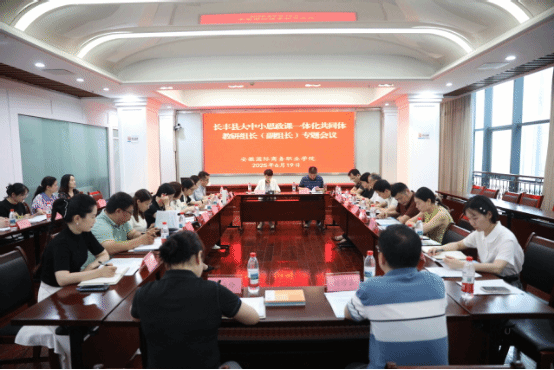 6月19日,长丰县大中小学思政课一体化共同体教研组长(副组长)专题会议在安徽国际商务职业学院举行。长丰县大中小学思政课一体化联盟第一、第二教研组组长和副组长学校的思政学科负责人、骨干教师代表参加会议。我校马克思主义学院党总支书记、院长葛成飞,思政课教师金孙磊参加会议。