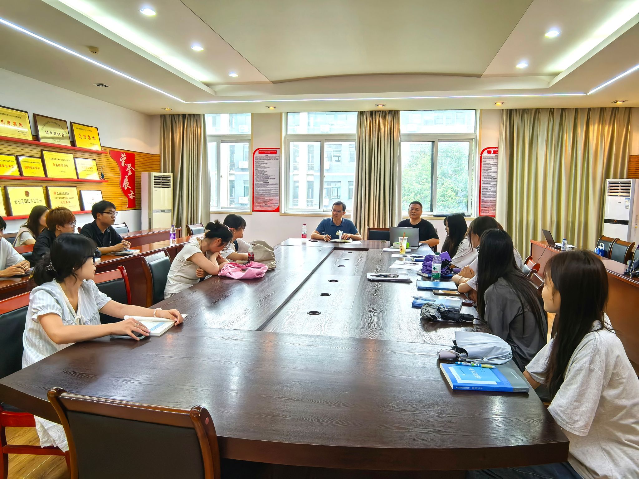 为持续推进思政课教学改革创新,倾听学生心声、凝聚育人合力,6月23日,马克思主义学院召开学生座谈会。座谈会聚焦本学期两门思政课程 ——《习近平新时代中国特色社会主义思想概论》与《毛泽东思想和中国特色社会主义理论体系概论》教学内容与评价,广泛听取学生意见建议。学院领导葛成飞、蒋强军及部分2024级学生参加座谈会,共同畅谈学习体验。