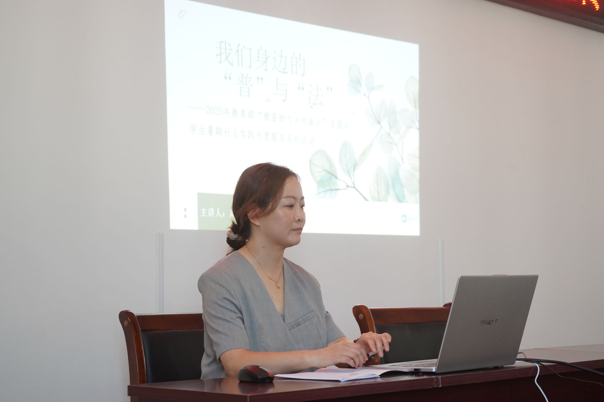 8月16日下午,“普育乡风”志愿服务队于太湖县城西乡大龙村第二党支部党员活动室开展“法润新农村,典亮振兴路”普法宣传活动。指导教师周丹萍围绕赡养、婚姻、继承、土地承包等村民关切的问题,以七个真实案例展开讲解,涵盖老人赡养、彩礼纠纷、债务偿还、遗赠扶养等典型农村法律情境。讲解语言通俗易懂,表达规范流畅,有效打通普法“最后一公里”。现场设置的咨询互动环节气氛热烈,村民踊跃参与,在实用法律学习中同步提升国家通用语言应用能力。活动创新“普法+推普”双推进模式,以普通话为纽带,增强法治宣传实效,真正让法治理念“声”入人心,为乡村振兴营造良好法治环境。