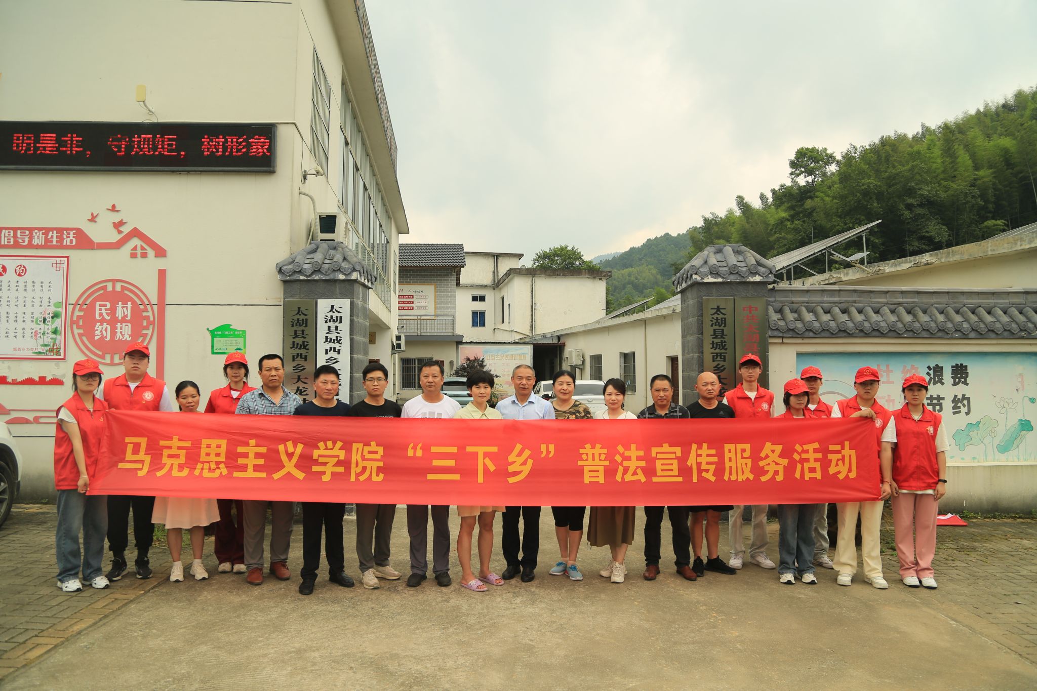 为深入贯彻落实党的二十大精神,响应《2024年“江淮普法行”活动方案》的号召,以青春之力推动乡村振兴战略实施,7月10日—12日,马克思主义学院联合校团委组建2024年大学生暑期文化科技卫生“三下乡”社会实践服务团队,前往太湖县城西乡大龙村、树林村、界址村开展社会实践活动。