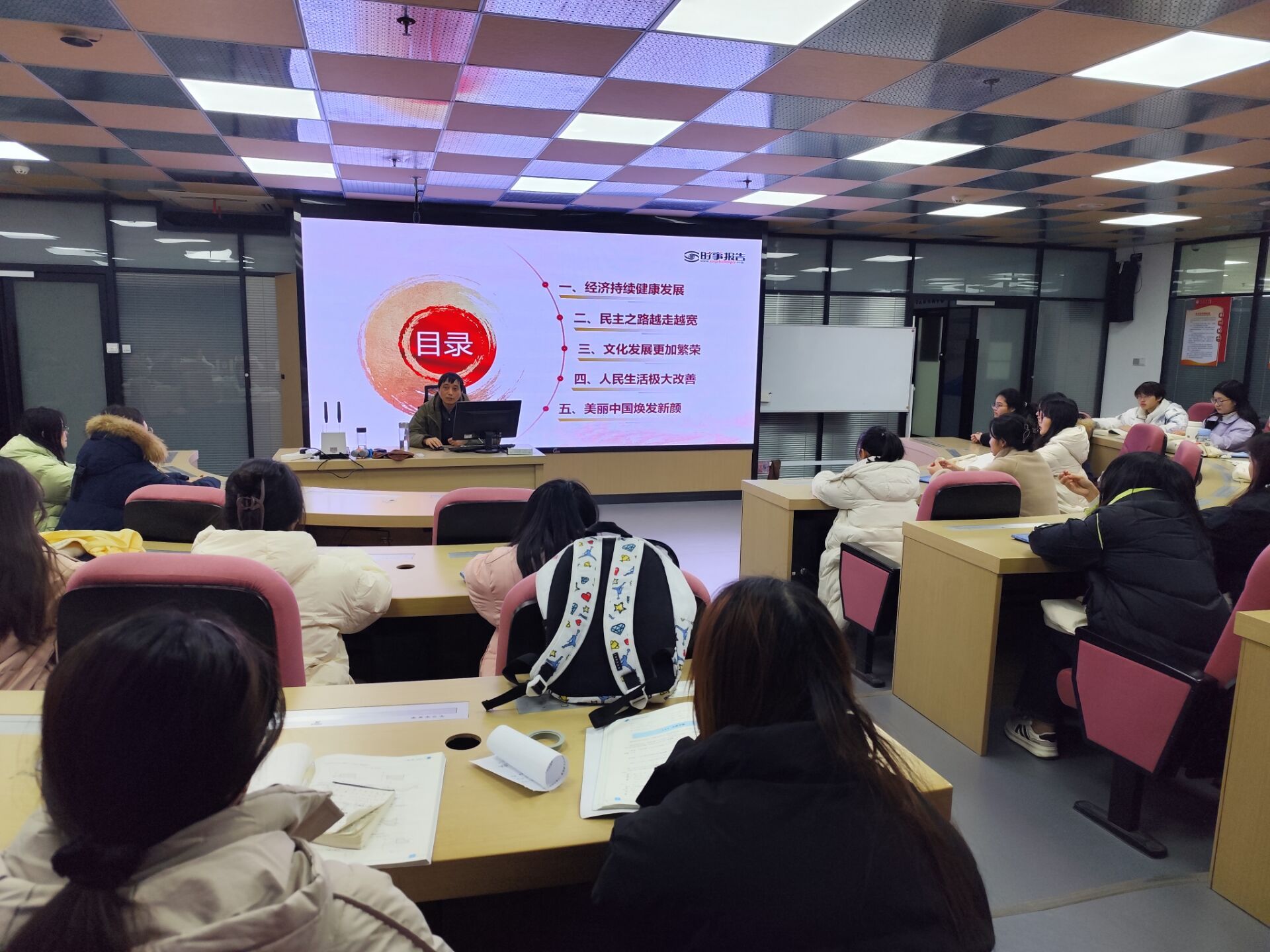 党委班子成员根据学生专业背景、所处学段循序渐进设计课程目标,结合校史校情、办学特色、专业优势等校本文化设计教学内容,以学生喜闻乐见的教学方式讲清“形势”、讲明“政策”,先后为学子们带去了“学习贯彻党的二十届三中全会精神”“七十五载迎盛世 砥砺前行续华章”“加快发展新质生产力”等专题内容。