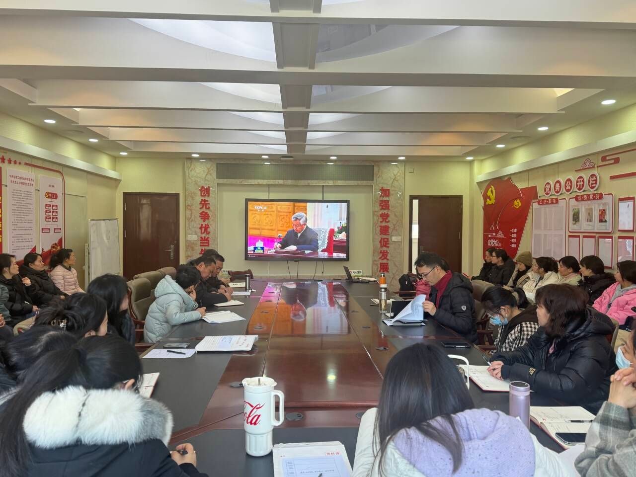 在理论学习环节,全体教师认真学习了习近平总书记在中共中央政治局第十八次集体学习时的重要讲话和2025年新年贺词;共同研读了《习近平文化思想学习纲要》的部分内容;领学了习近平同志《论坚持和完善人民代表大会制度》和习近平总书记《论教育》中的部分篇章。