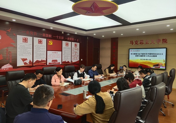 4月12日,思政课党支部组织开展学习贯彻习近平总书记重要讲话精神党员活动,认真学习贯彻习近平新时代中国特色社会主义思想主题教育工作会议精神。会议由思政课党支部书记蒋强军主持,马克思主义学院党总支副书记刘守旺和思政课党支部全体党员教师参加。