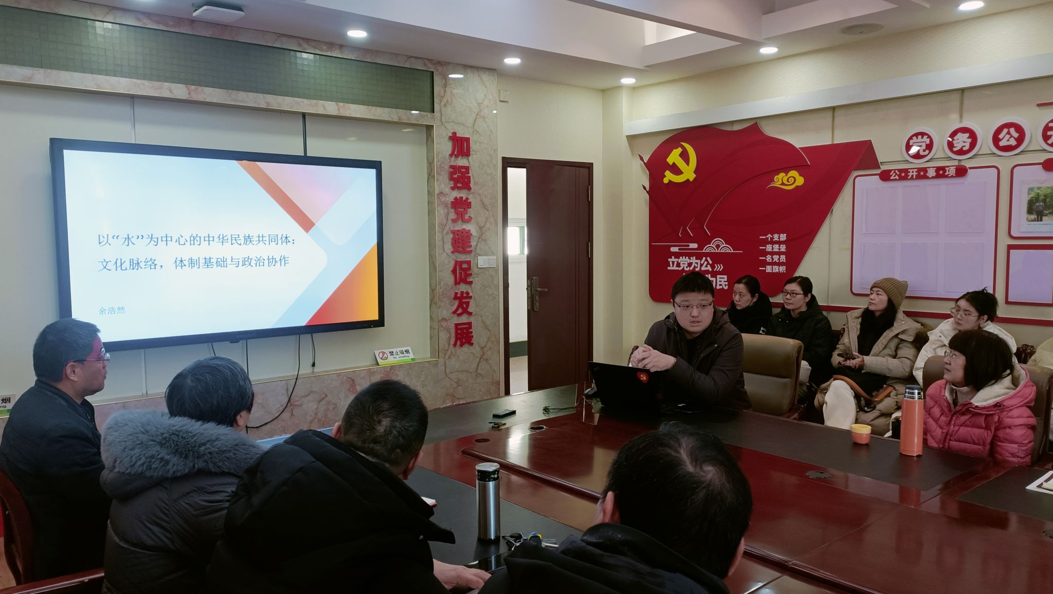 2025年1月9日,马院党总支在公共课教学部会议室举行教职工政治理论学习会,上海大学马院博士余浩然受邀作专题讲座,全体教师参会,党总支书记葛成飞主持会议。