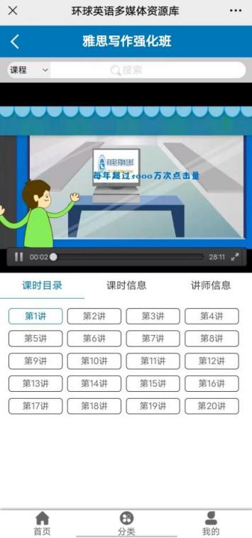 完成注册后,手机端点击“我的”或电脑端点击“我的环球”,登录会员账号后观看视频,每看完一节课统计为一个课时。