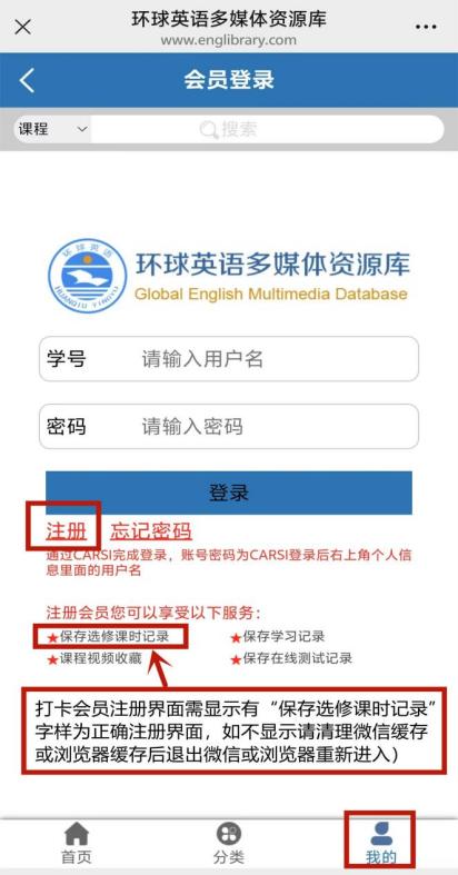 报名方式:手机端点击“我的”或电脑端点击“我的环球”进入活动报名界面,点击“注册”完成会员注册。在注册时,请务必填写真实的个人信息,会员注册界面需显示有“保存选修课时记录”字样为正确活动界面。如不显示请清理微信或浏览器缓存,方法如下:
