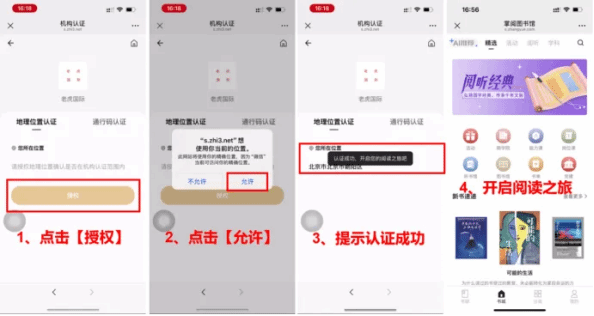点击【授权】,点击【允许】使用你当前的位置,即可开启免费在线阅读。