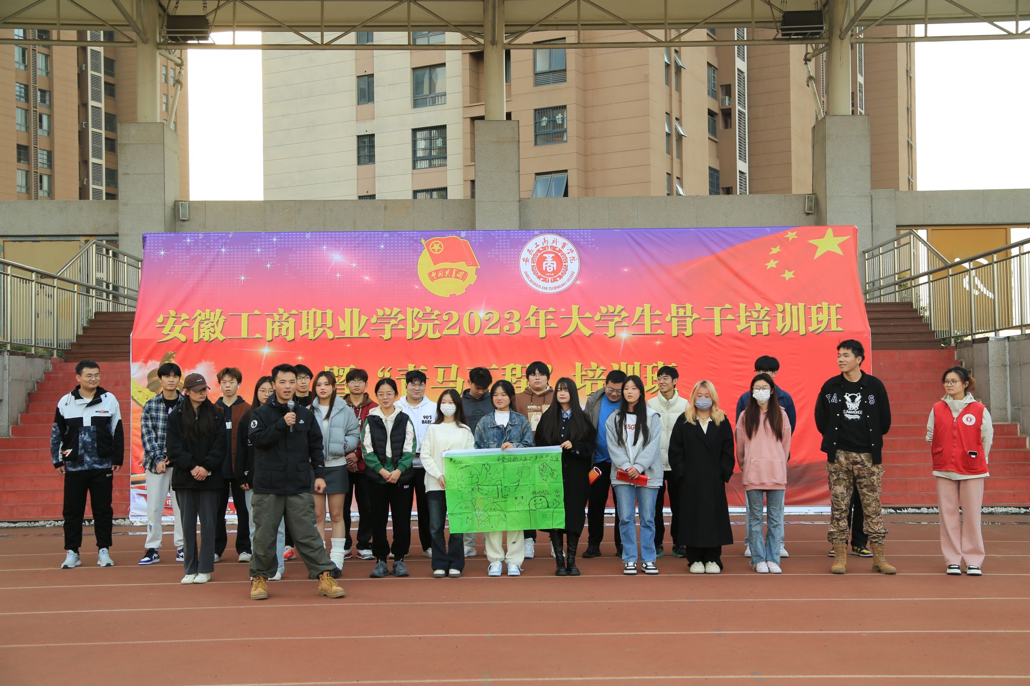 2023年12月9日,学员们共同参加了户外素质拓展,他们在操场上尽情挥洒青春激情,展现青春风采。团队建设、团队风采展示和“能量传输”等实践活动,引导同学们感悟团队精神,凝聚团队力量,培养了团队合作意识与创新意识。