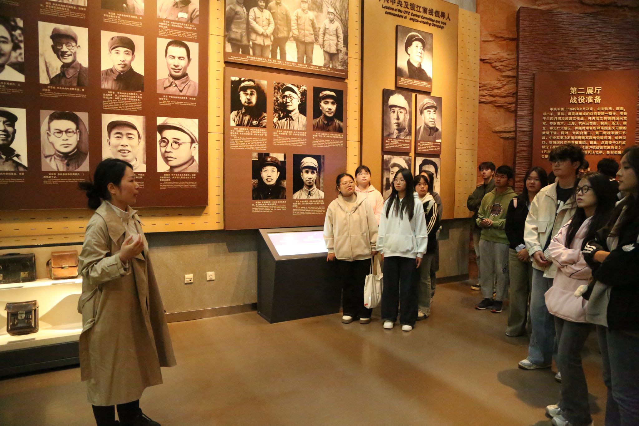追寻红色足迹,历史在现场“活”起来。在气势恢宏的渡江战役纪念馆内,同学们通过观看丰富的实物、影像和历史资料,深刻感受到了“钟山风雨起苍黄,百万雄师过大江”的壮阔场景与革命先烈们不畏牺牲、勇往直前的英雄气概。巨大的战役浮雕、珍贵的文物展品以及模拟当年的作战地形图,无一不让同学们驻足沉思,仿佛将大家带回了那个波澜壮阔的革命年代。在新四军江北指挥部旧址,大家身临其境地追忆了那段铁血抗战的烽火岁月,体悟了新四军将士矢志不渝、不怕牺牲的铁军精神。历史的厚重感扑面而来,让书本上的知识变得可感可触。