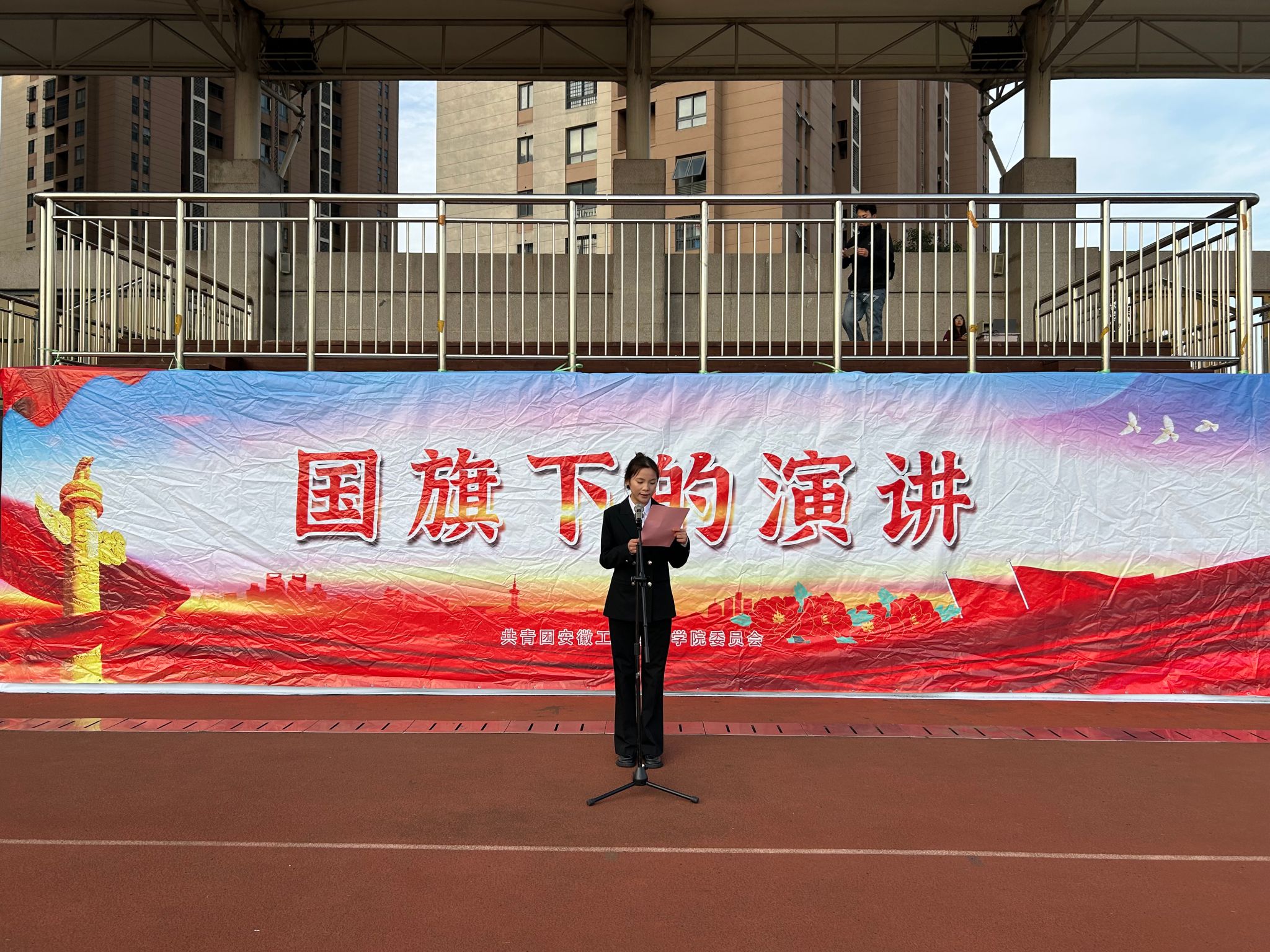 为积极倡导终身学习理念,引导全体师生厚植学习根基、强化实践担当,11月3日,我校在田径场隆重举行了以“以学筑基,以行见效”为主题的升旗仪式暨“国旗下的演讲”爱国主义教育活动。团委委员、各二级学院团总支书记及学生代表共计1000余人参加此次活动。