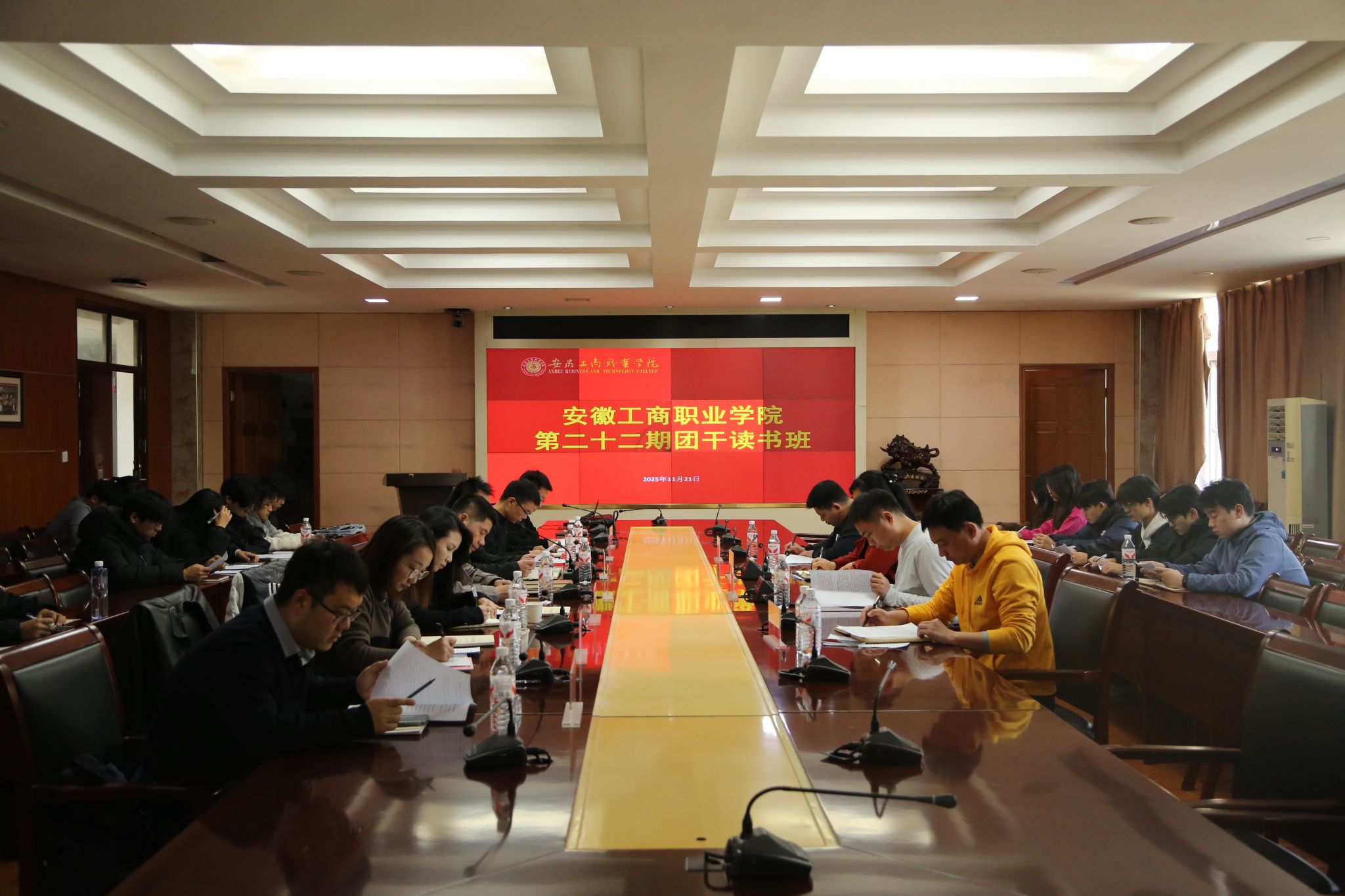 11月21日,安徽工商职业学院第二十二期团干读书班于明德楼会计学院会议室举办。会计学院党总支书记赵艳、校团委副书记童乐、各二级学院团总支书记及青年团干代表等参会。