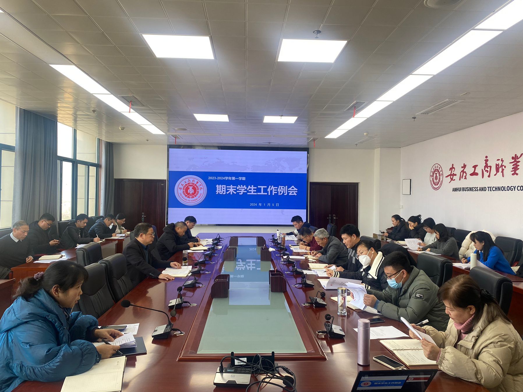 春华秋实又一载,砥砺奋进续新篇。1月5日下午,我校在综合楼三号会议室组织召开2023-2024学年第一学期期末学生工作例会。本次会议的任务是总结本学期以来学工系统的工作,研判学校学工系统当前面临的机遇和挑战,部署期末和假期工作。校党委委员、副校长胡捍东主持会议,各院部总支书记、副书记、办公室主任,保卫处、后勤服务中心、团委等处室负责人,学生处全体工作人员参加会议。