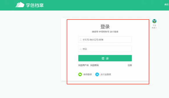 3.注册账户后登录或直接登录(学信网用户名密码为入学时学生个人注册的用户名密码,如忘记可通过学信网门户www.chsi.com.cn,忘记用户名找回后登陆,学校无用户管理权限,无法重置密码,如有疑问可咨询学信网客服。);