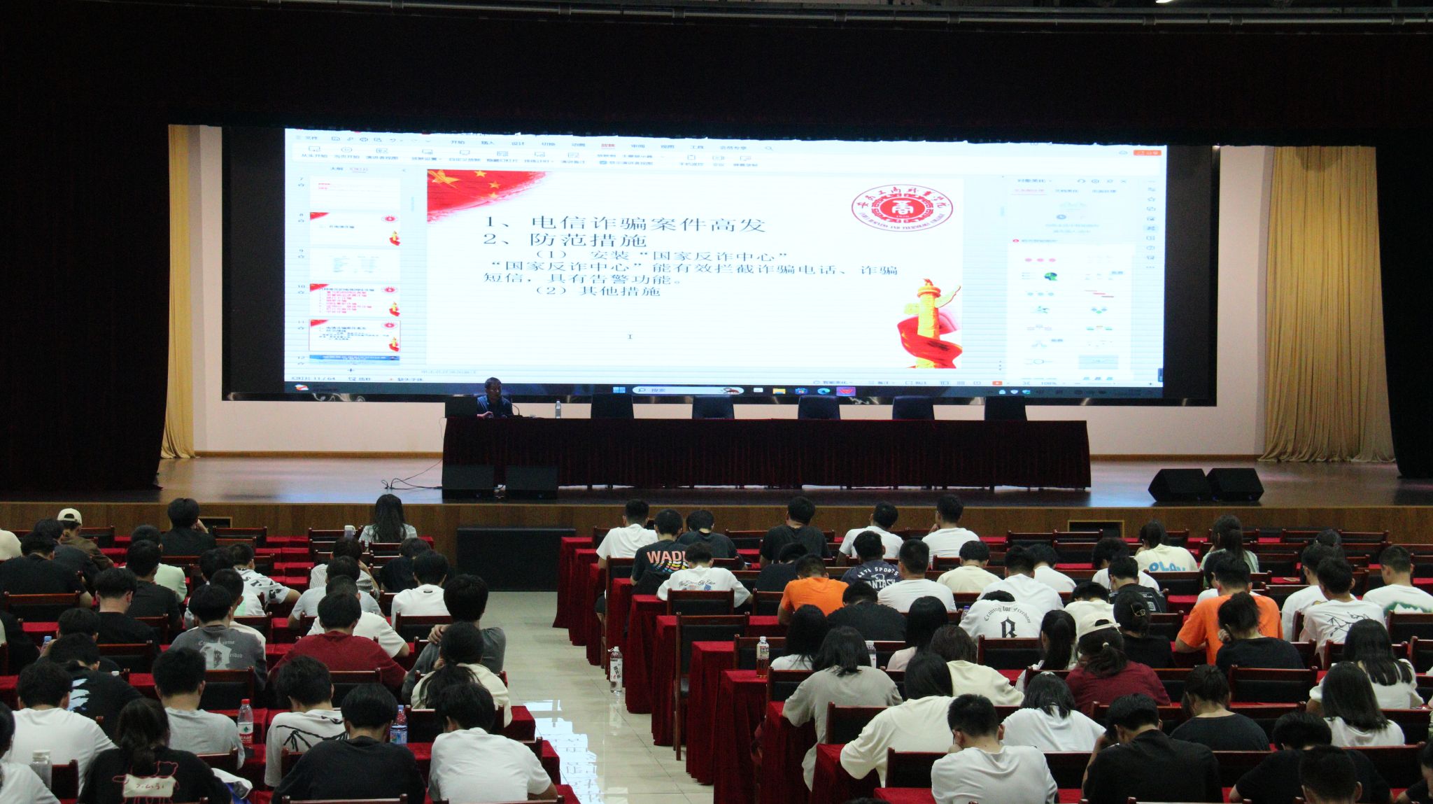 保卫处周应生老师、马克思主义学院陈慧老师作了《安全与法制教育》、《理想信念教育》报告,分别从“预防和抵制不良校园网贷”、“警惕和避免落入传销陷阱”、“谨防网络电信诈骗行为”、“坚决抵制非法宗教在校园传播”、大学生文明行为养成教育等方面入手,通过许多真实生动的案例,向同学们讲解校园贷、传销、电信诈骗、非法宗教的本质及其危害,指导大学生透过现象看到实质,避免被表象所迷惑,同时,引导大学生利用专业法律武器同违法犯罪行为作斗争,保护自身及他人的生命财产安全,自觉承担应尽的社会责任。