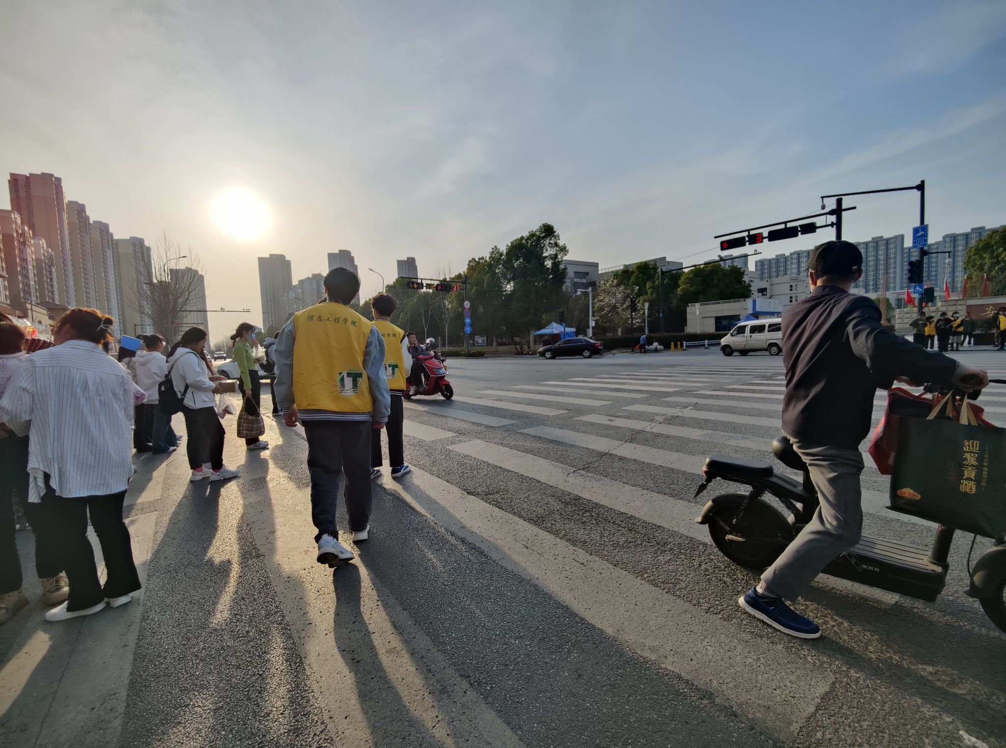 我院团总支于3月6日至3月22日组织开展“如沐春风,步履慢行”文明督导活动。志愿者们身穿黄马甲,手举指示牌或指引旗,引导车辆礼让行人,文明行车,行人文明过斑马线,同学们在文明交通督导的岗位上尽心尽责,微笑服务,较好地保证了交通的顺畅有序,在街头形成了一道靓丽的风景线。