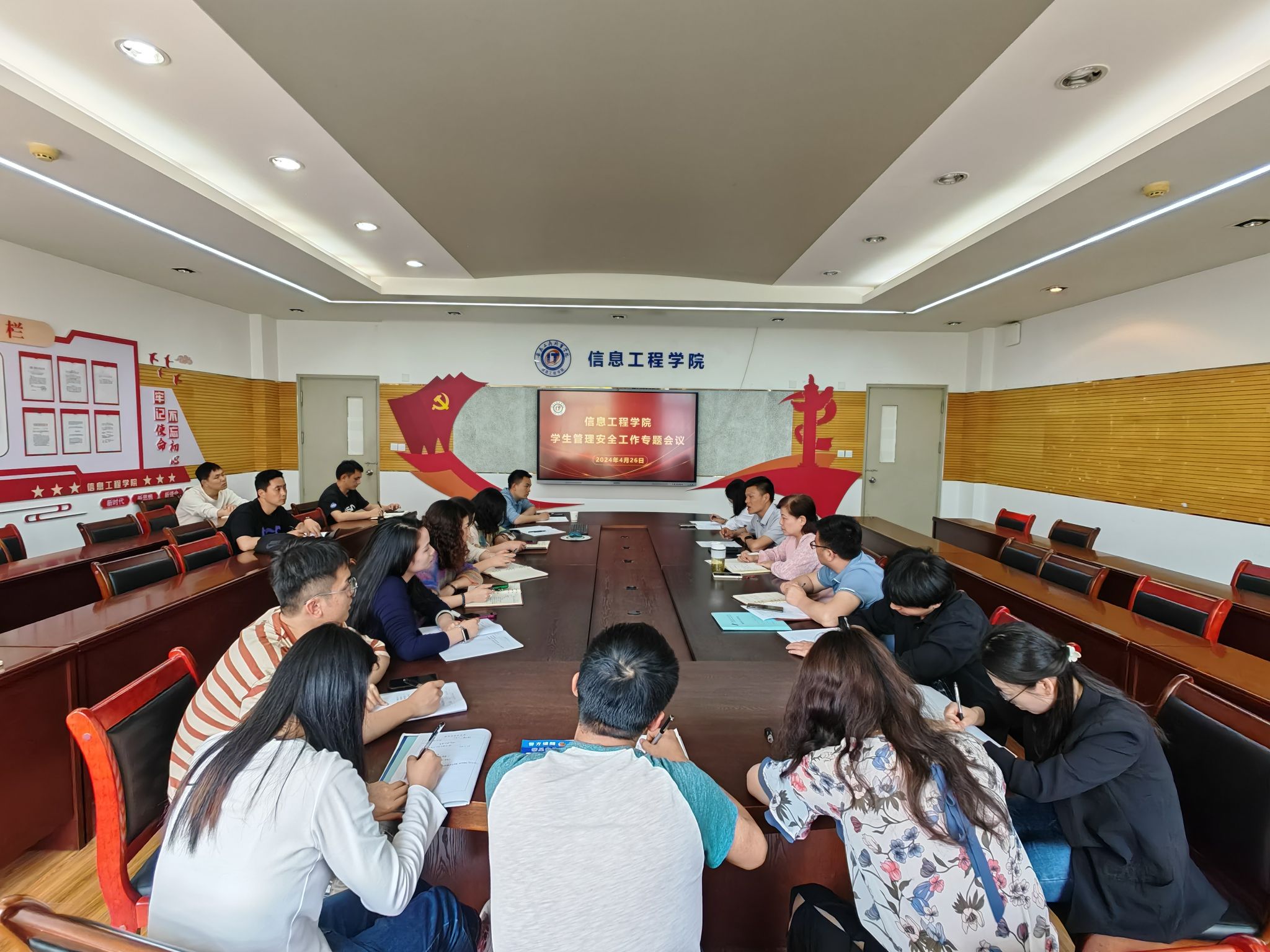 为全面提升学生管理水平和安全意识,确保学生群体的稳定与安全,4月26日,信息工程学院组织召开了学生管理安全教育专题工作会议,学院党总支书记张静雯及全体辅导员参会,会议由党总支副书记陈夺主持。