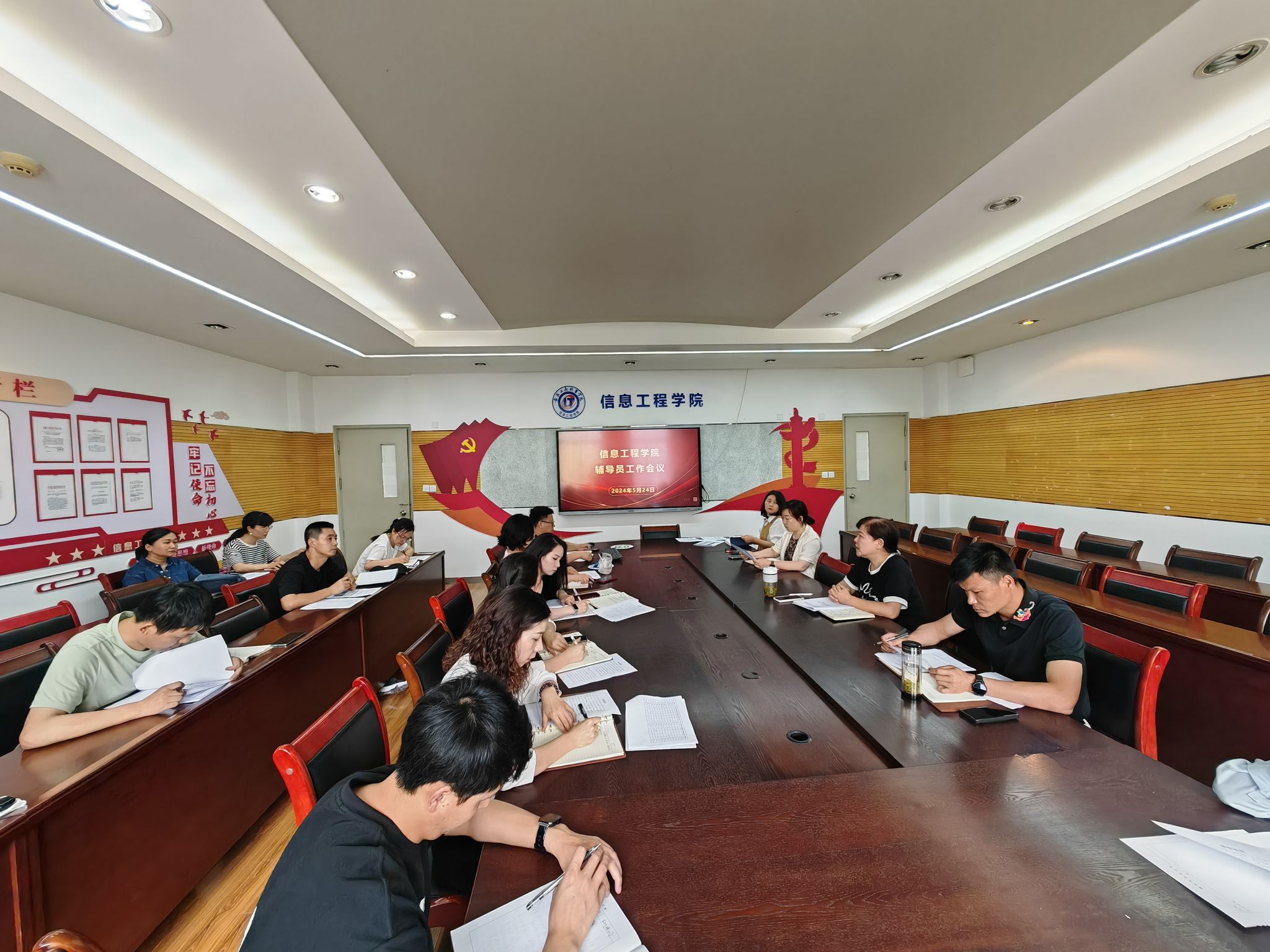 为进一步提升安全教育意识,加强学生安全管理,推进毕业生高质量充分就业,5月24日,信息工程学院召开期中学生工作例会,学院党总支书记张静雯、副院长黄梅娟、教务科相关老师及全体辅导员参会,会议由党总支副书记陈夺主持。