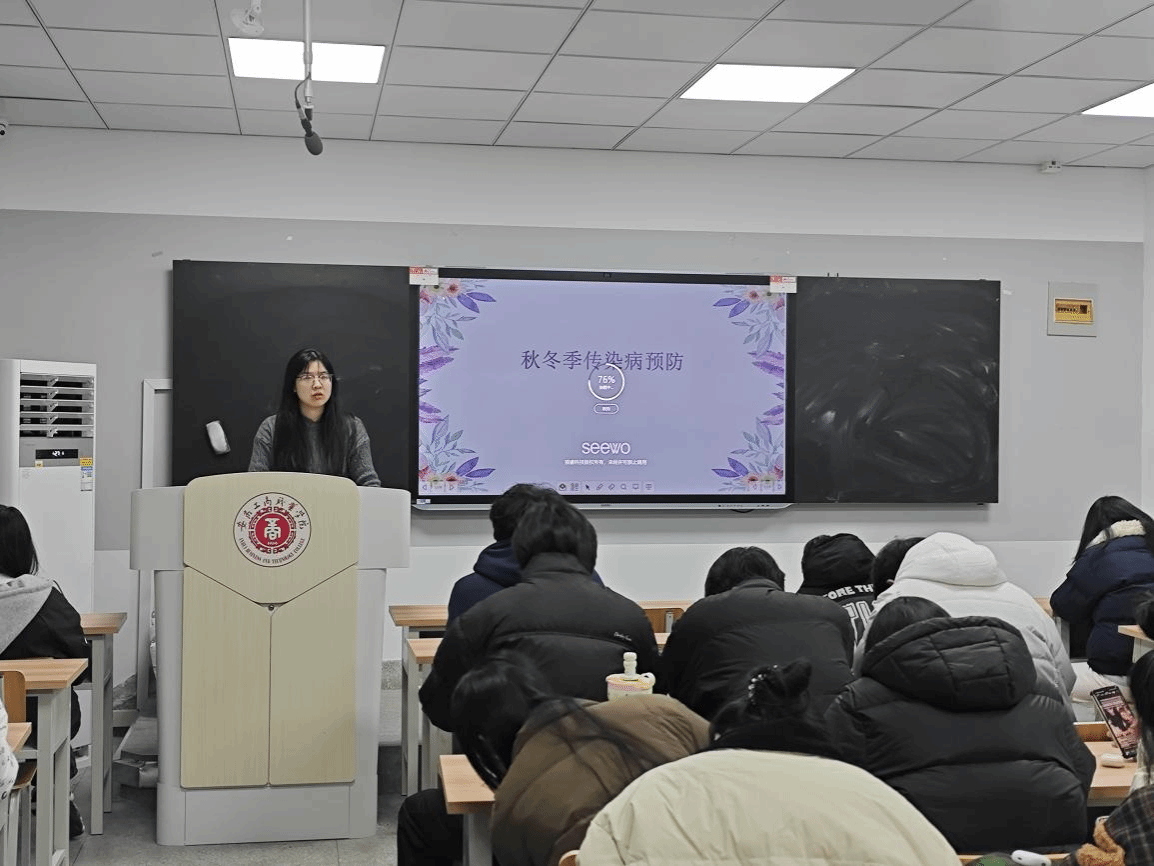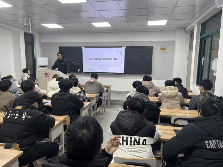 各班辅导员向同学们讲解了秋冬季常见传染病的相关知识,并结合生活中的具体事例,重点介绍了水痘、诺如病毒和流行性感冒等常见传染病的主要症状、危害以及预防和治疗措施,切实加强了同学们的防范意识。此外,辅导员还反复强调了个人卫生防护的重要性,倡导同学们养成勤洗手、保持室内空气流通的好习惯,合理规划学习与休息时间,均衡摄取营养,以增强体质。针对体质较弱的学生群体,辅导员特别建议他们加强疫苗接种,以提升自身免疫防御能力。同时,辅导员也提醒同学们,一旦出现相关症状,应立即就医并及时向辅导员报告。