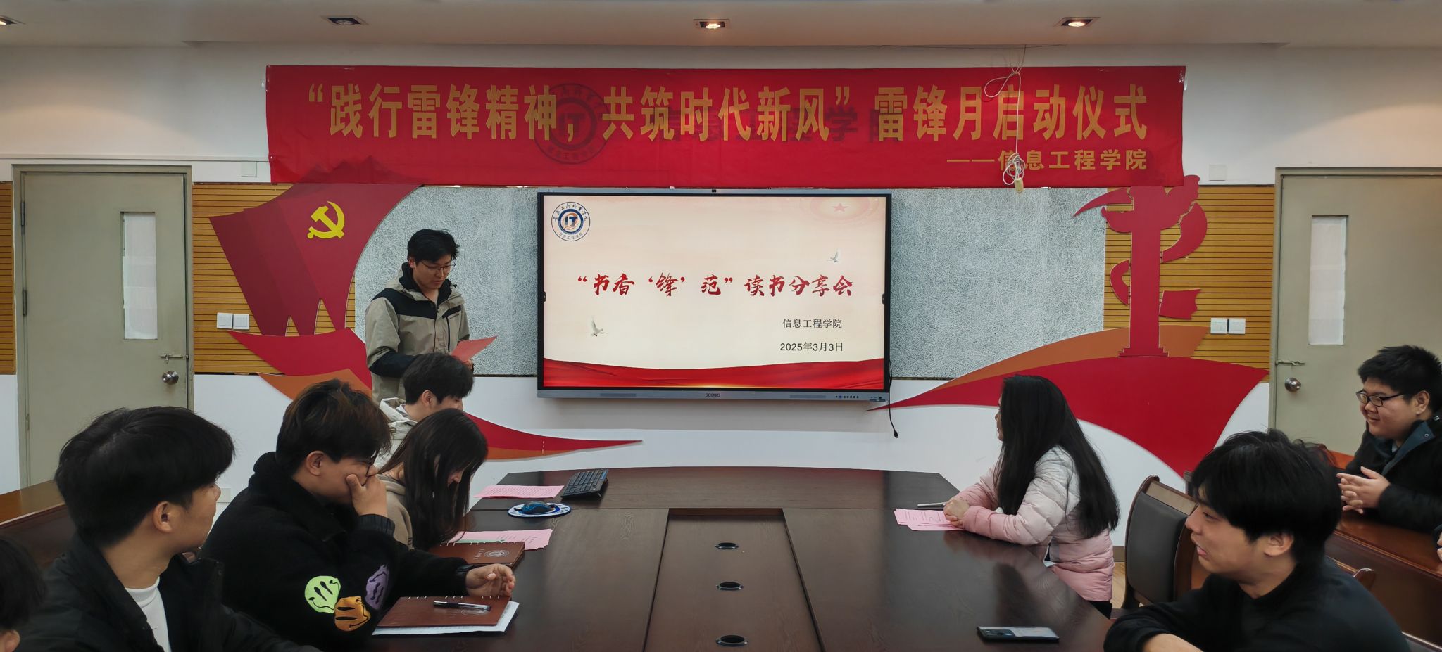 伴随着《学习雷锋好榜样》的激昂旋律,信息工程学院学雷锋志愿服务月活动正式拉开帷幕。启动仪式结束后,学院青年志愿者们开展了雷锋月主题系列活动之一:“书香‘锋’范”读书分享会,同学们踊跃发言,交流心得,立志通过实际行动贯彻雷锋精神,努力做到德智体美劳全面发展,成为合格的新时代接班人。