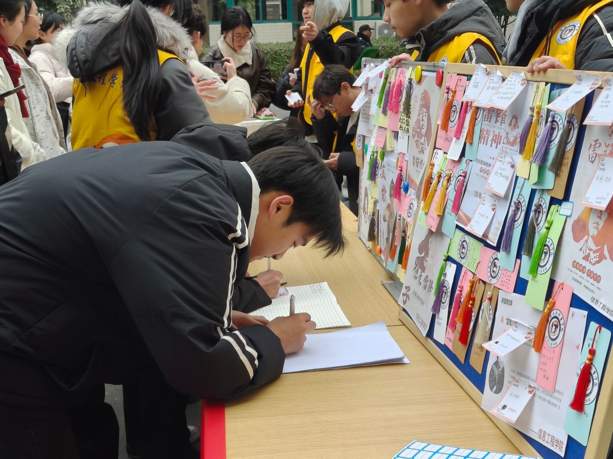 3月5日,正值雷锋纪念日,信息工程学院在校园内举办了“雷锋精神传,春日愿望成”主题留言活动,活动以“科技 + 公益”为特色,通过互动留言、精准圆梦和专业志愿服务,吸引了众多师生踊跃参与,生动诠释了“奉献、友爱、互助、进步”的志愿服务精神。
