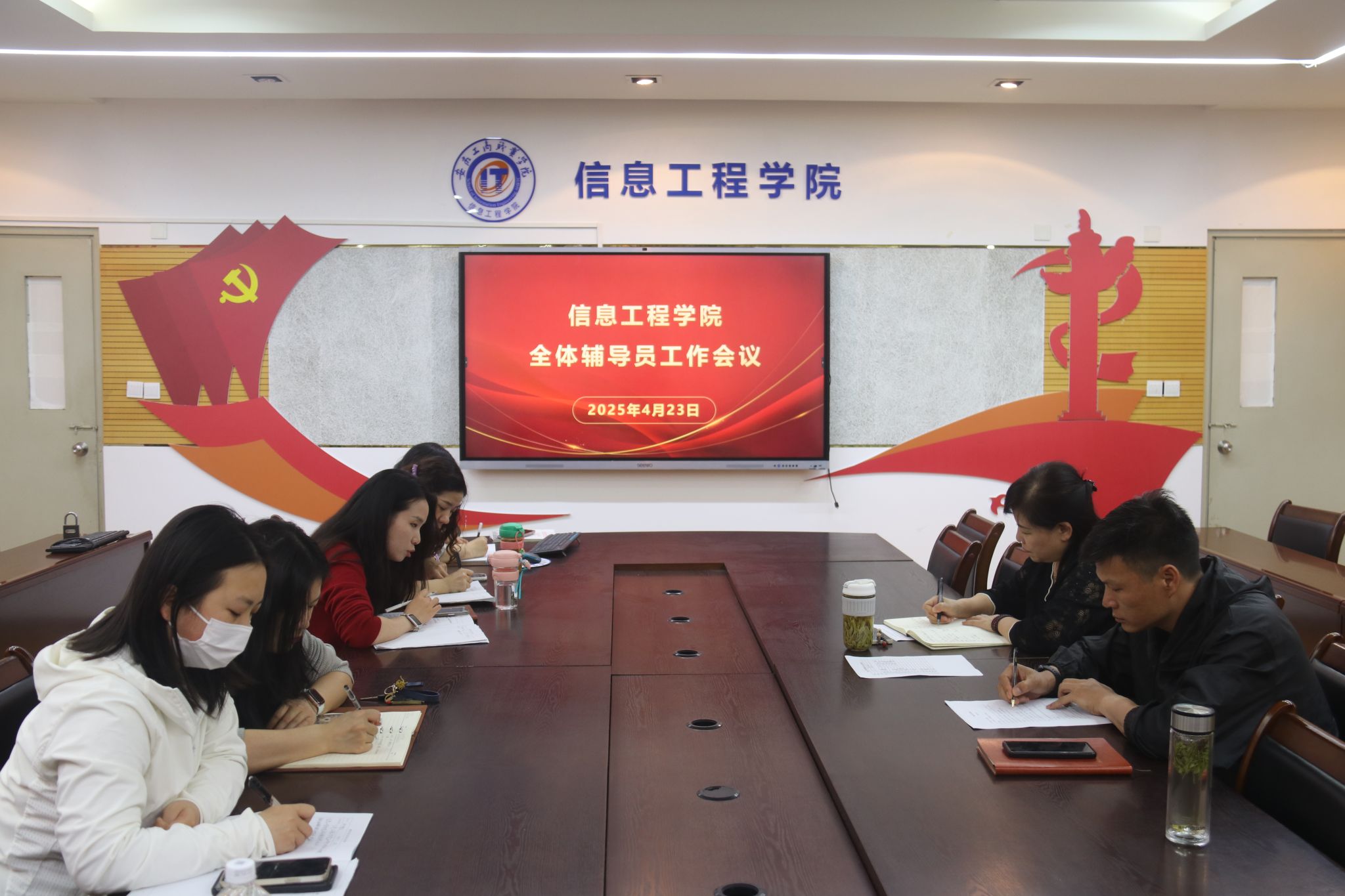 为切实做好五一假期学生安全教育工作,统筹推进近期学生工作重点任务,4月23日下午,信息工程学院在学院会议室召开辅导员工作专题会议。学院党总支书记张静雯出席会议,全体辅导员参加会议,会议由学院党总支副书记陈夺主持。